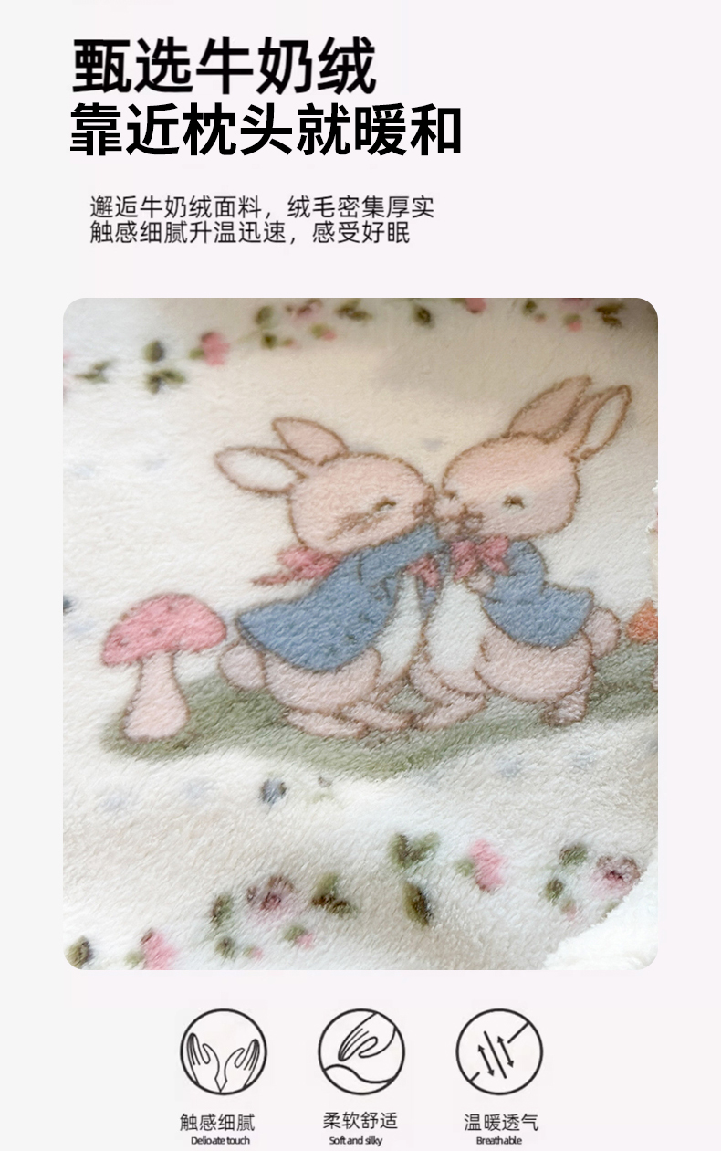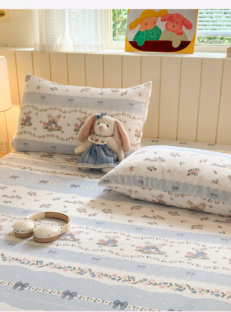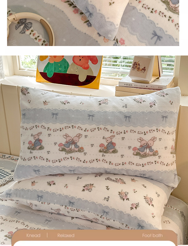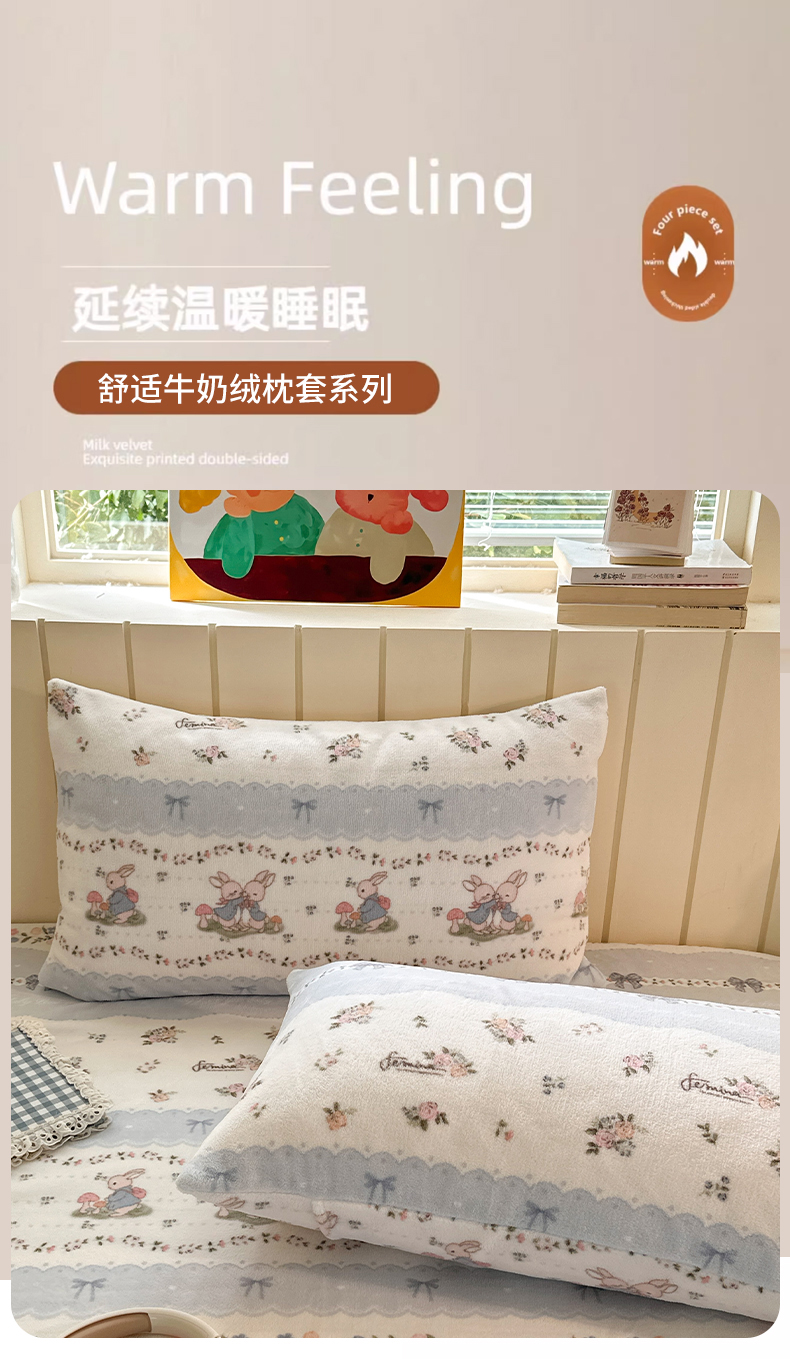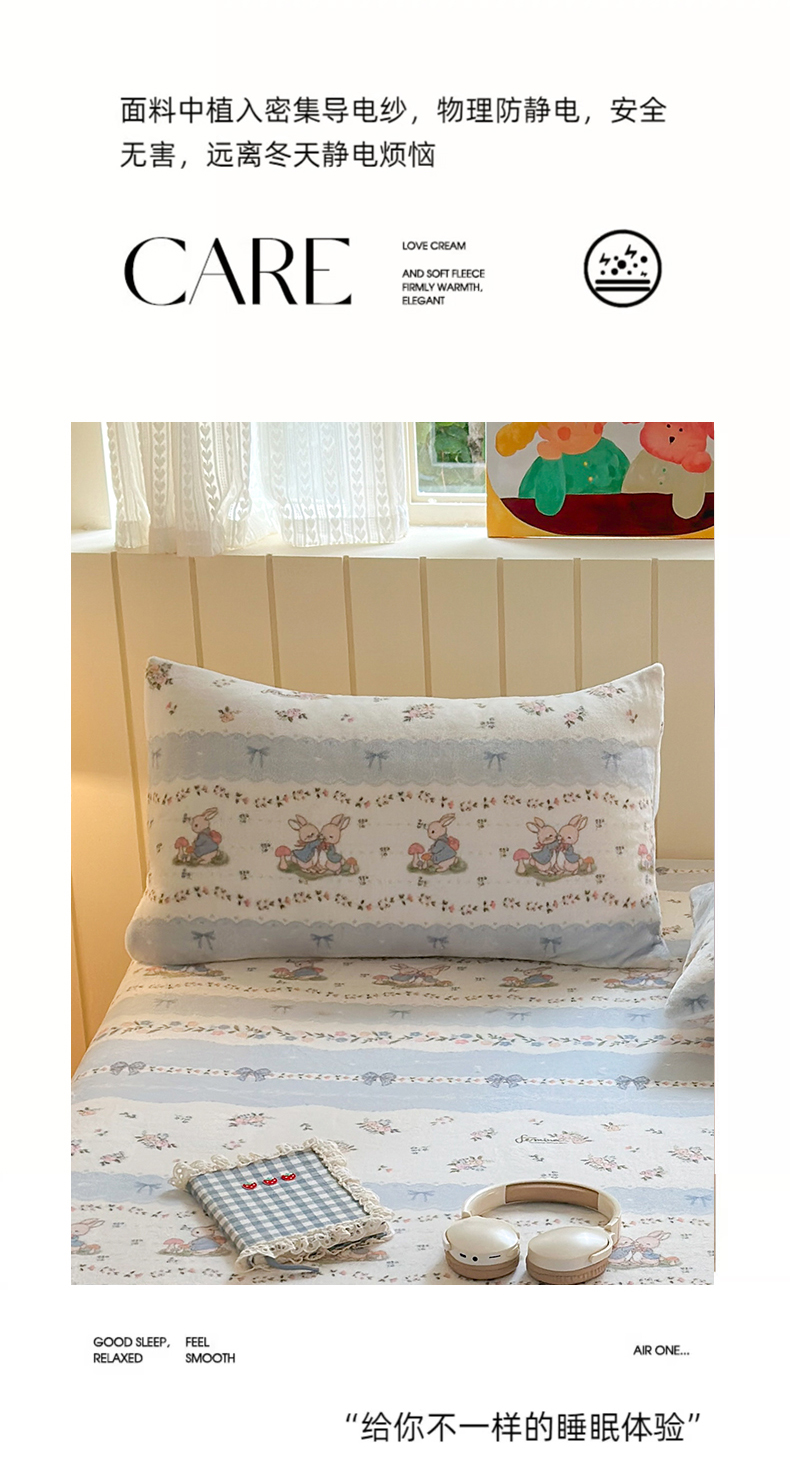 丽美人家纺 2025新款牛奶绒小版枕套 花边小兔