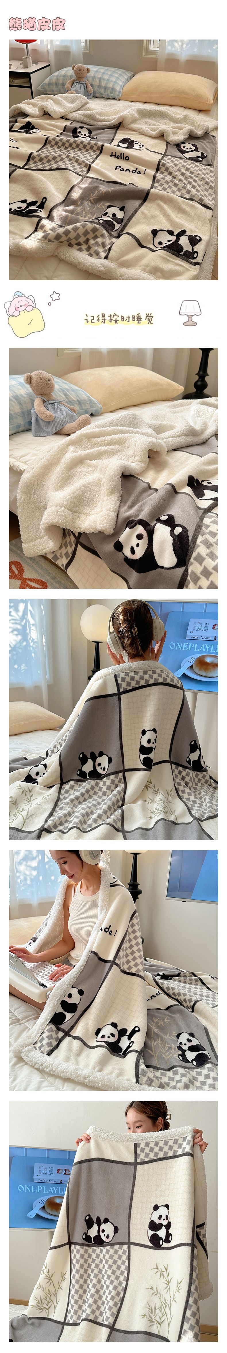 商品名称:小叮当家纺仓储工厂店 买家秀 爆款花型2025新款牛奶绒洛丽塔小清新印花系列毛毯毯子 熊猫皮皮