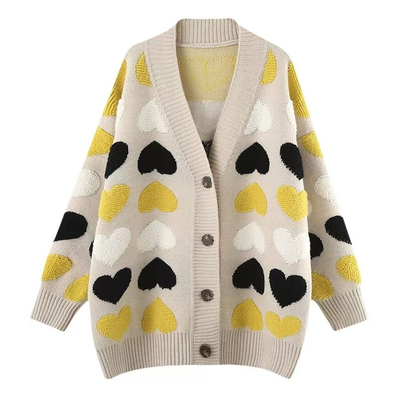商品名称:(总)洛兰沙家居馆 只代发 休闲气质款宽松慵懒风毛衣外套女秋冬厚新款韩版爱心毛巾绣针织衫开衫