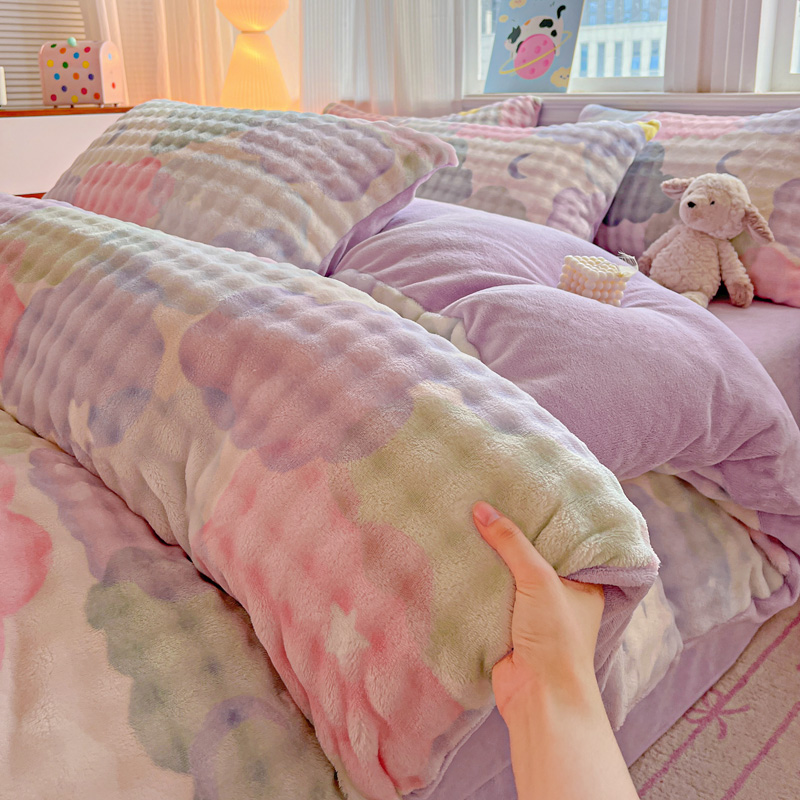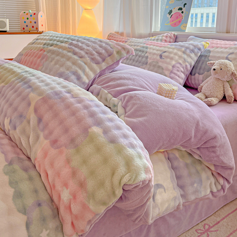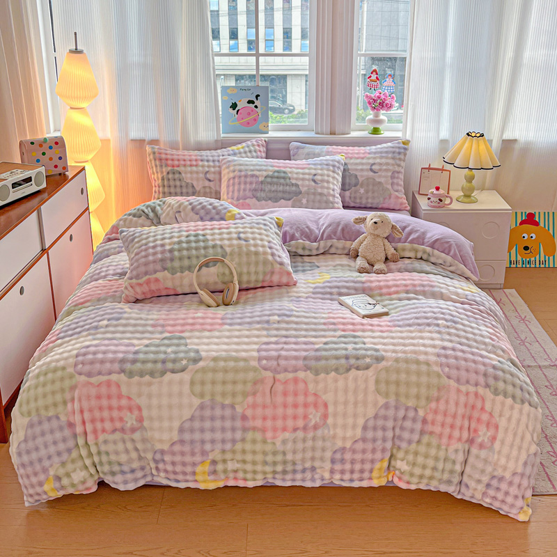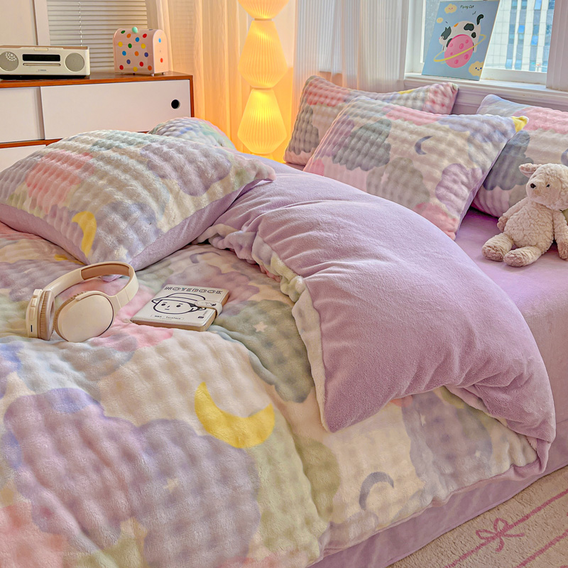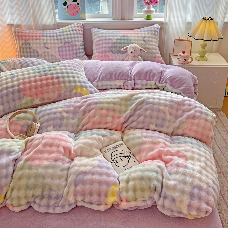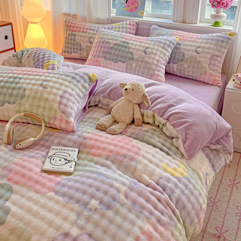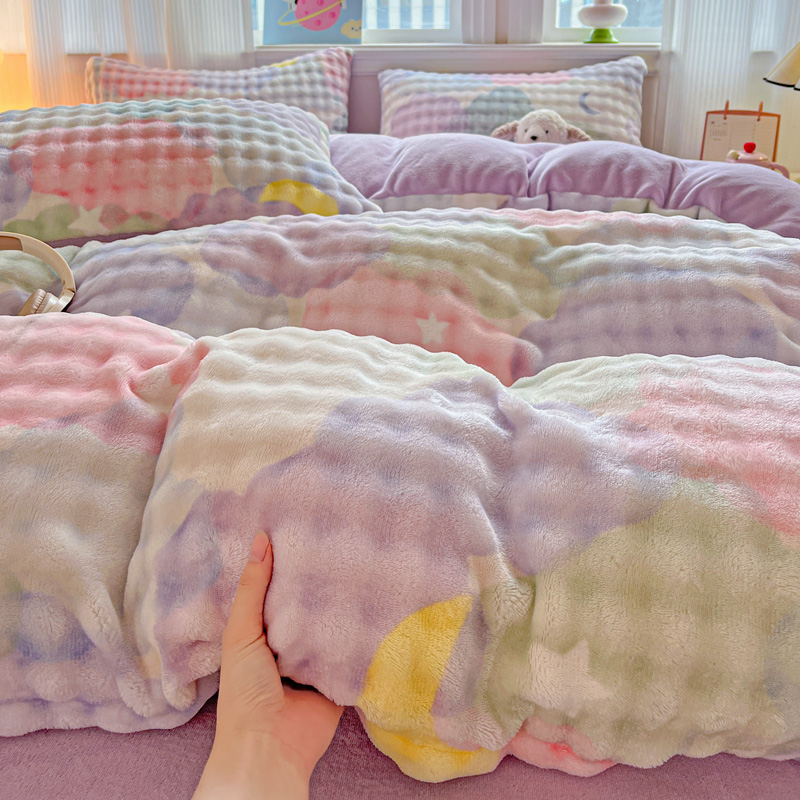 一比一 2025新款亲肤舒适保暖泡泡绒牛奶绒四件套 梦幻星空