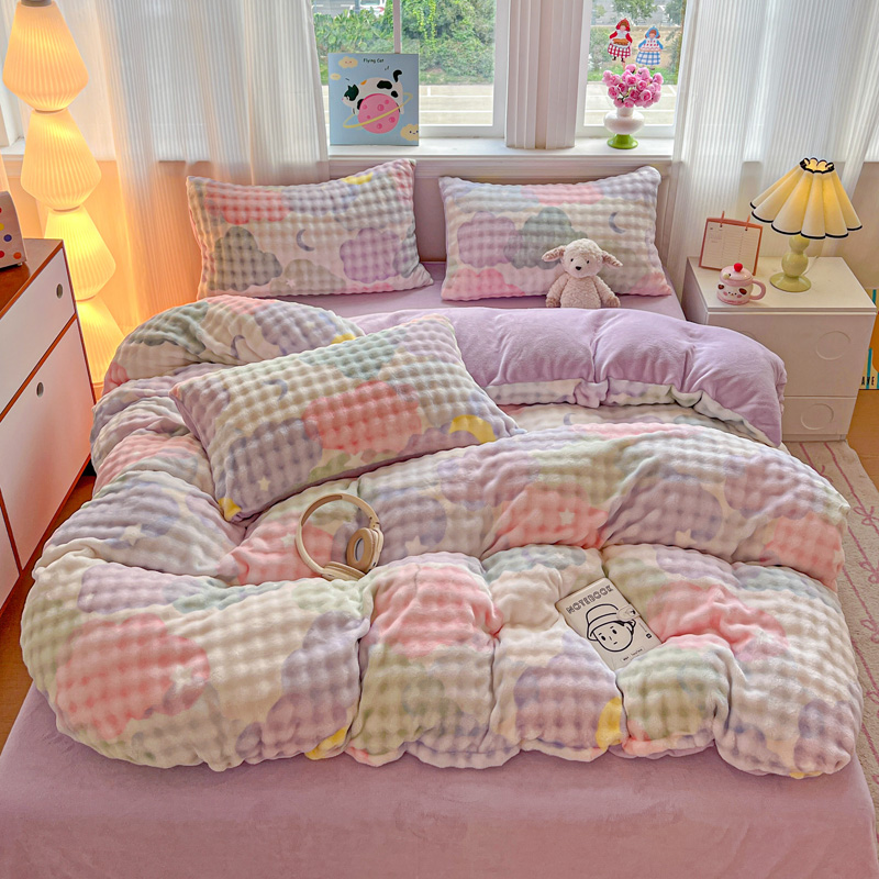 (总)一比一 2025新款亲肤舒适保暖泡泡绒牛奶绒四件套,暗香,奥黛丽,布布,春涧,蝶恋,焦糖奶咖,杰瑞猫咪,快乐狗仔,绿爱心,梦幻星空,奶油起司,胖达萌萌,甜心小兔,汪汪队,小野猫,郁金香