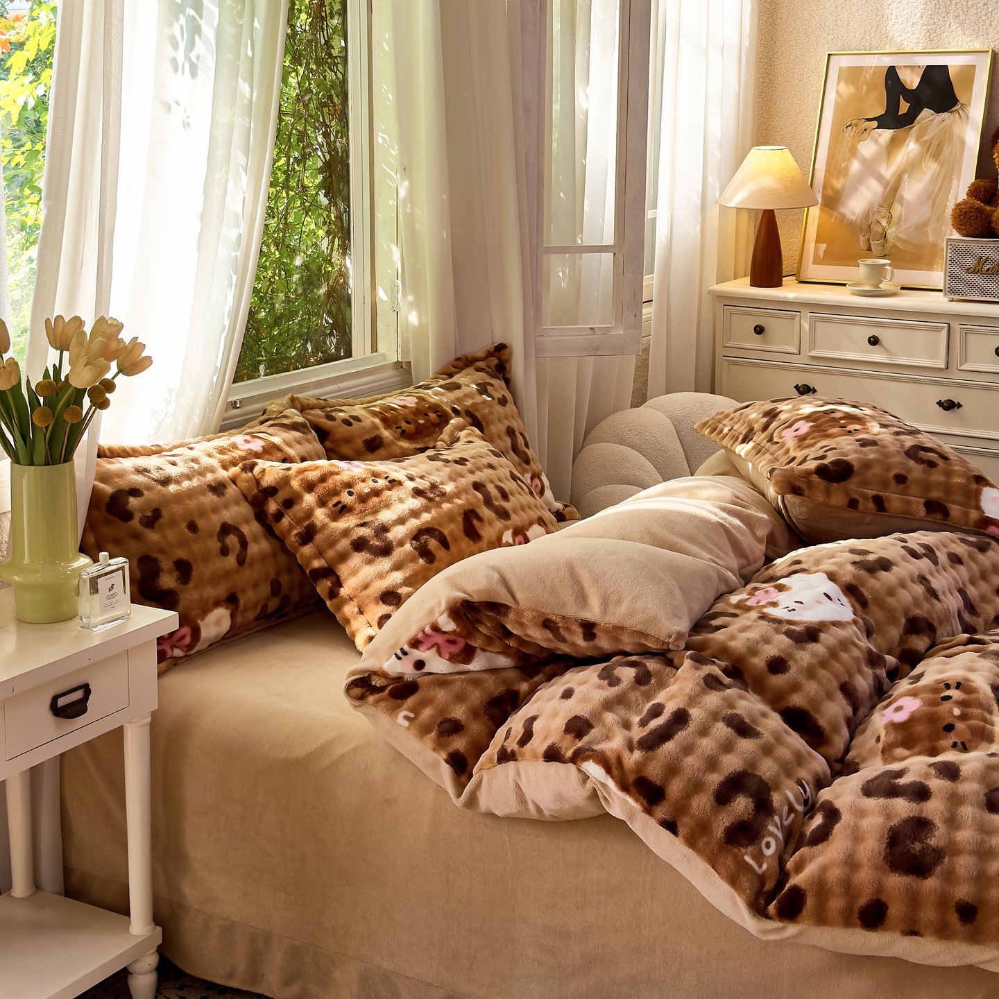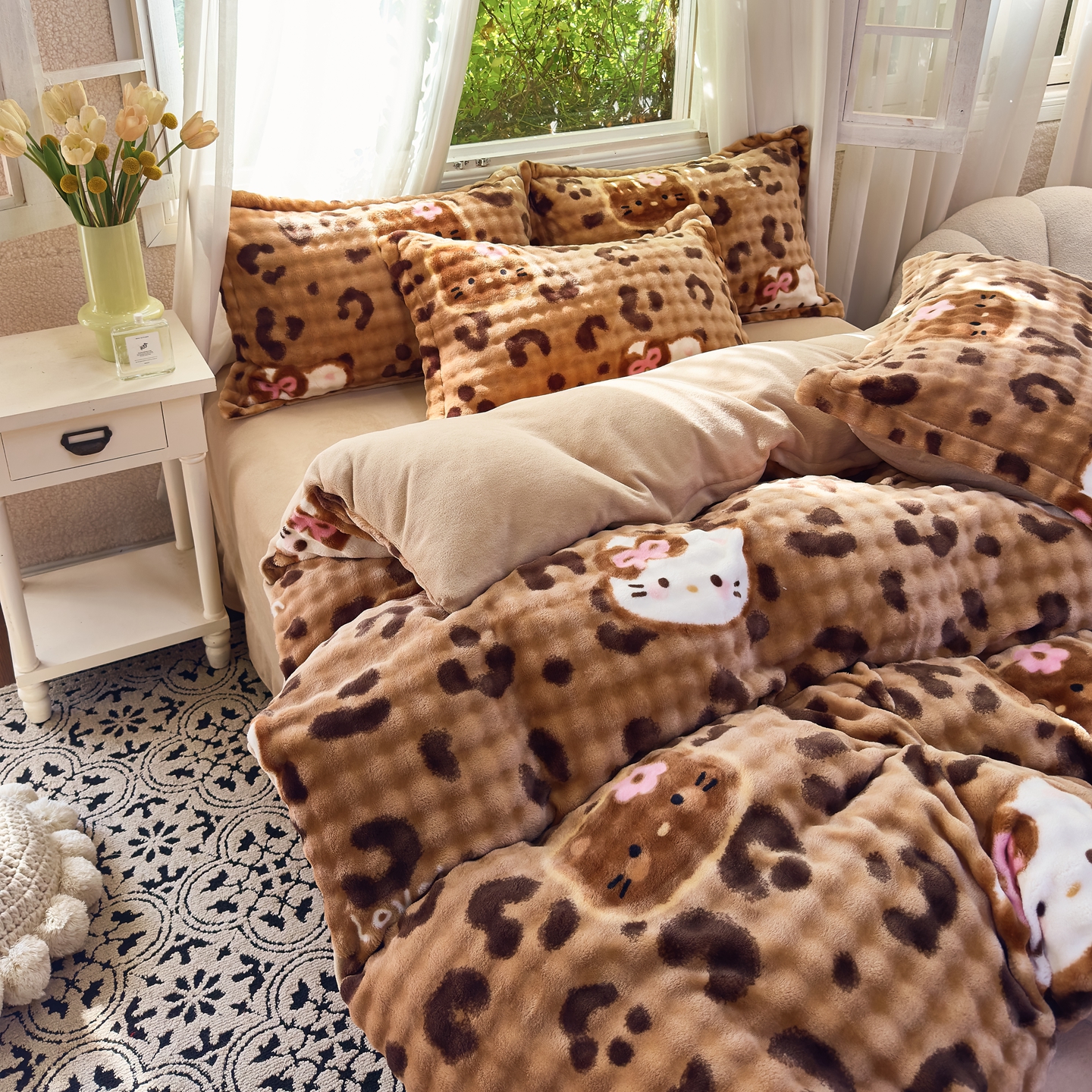 梦莱斯 2025秋冬新款高克重牛奶绒四件套 小野猫