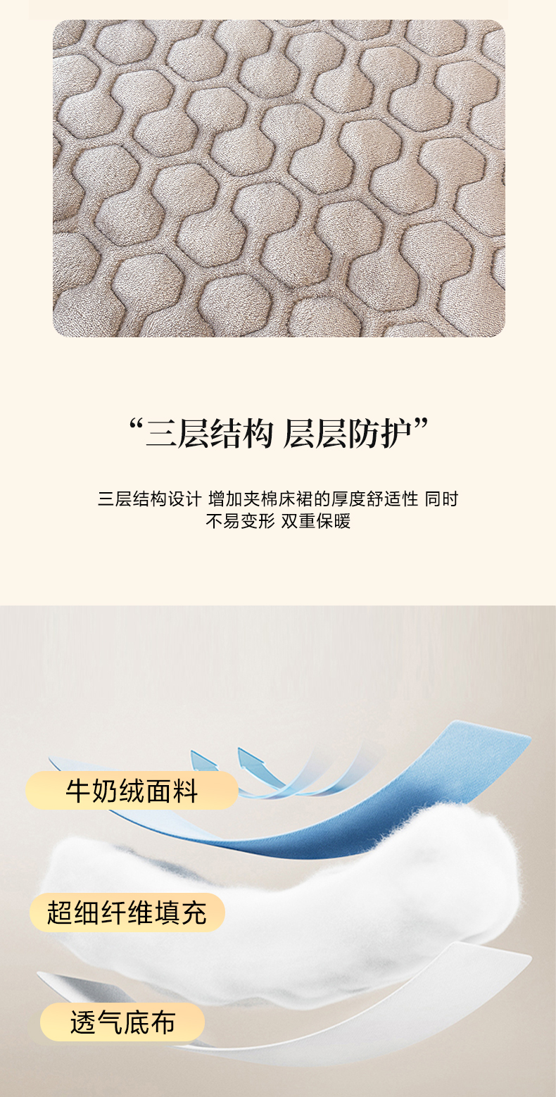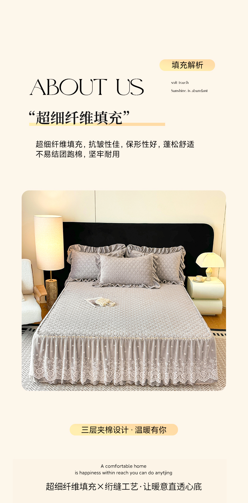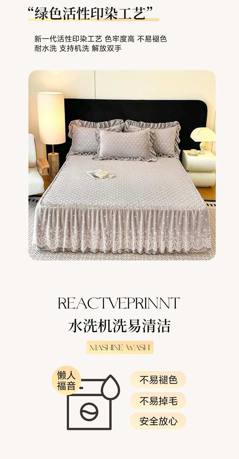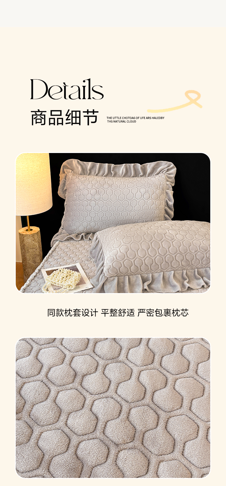 当前位置: 91家纺网 > 商品网购 > 床品套件 > 三件套 > 民新家纺 2025新款牛奶绒夹棉床裙三件套 浪漫时光-灰