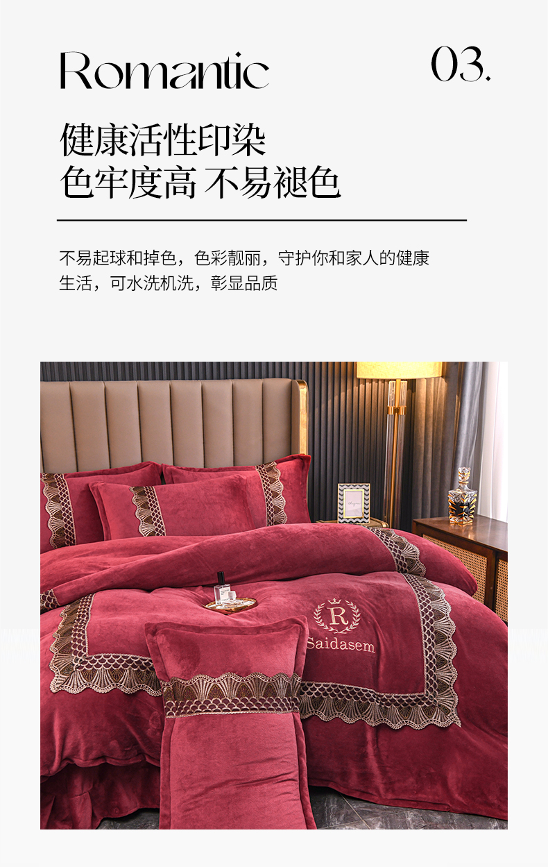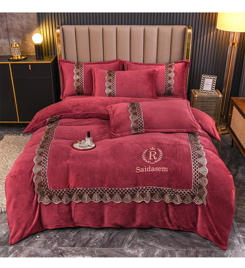 (总)仟网汇 2025热款轻奢贵族风蕾丝立体刺绣高克重牛奶绒四件套金貂绒法莱绒,深酒红,白加灰,豆沙粉,翡翠绿,高级灰,奶白