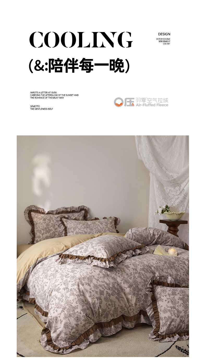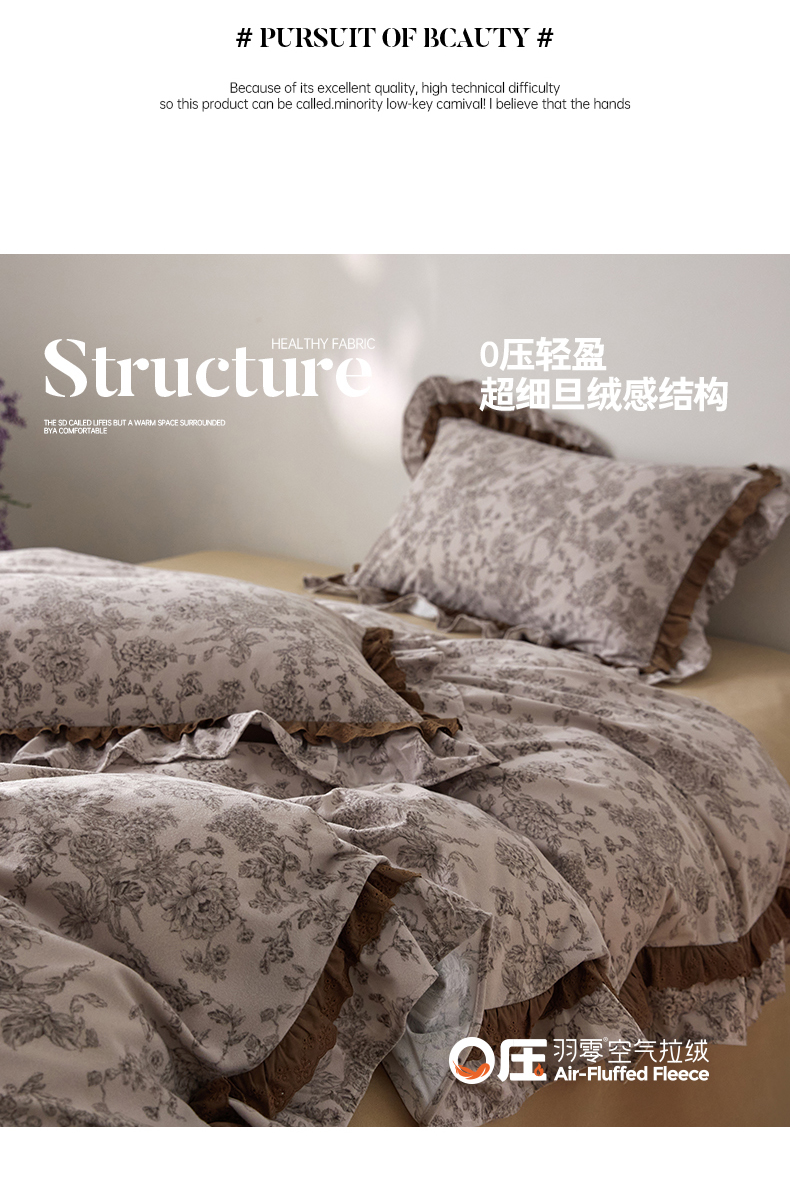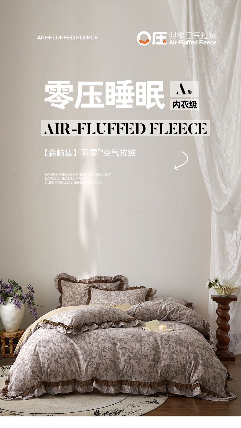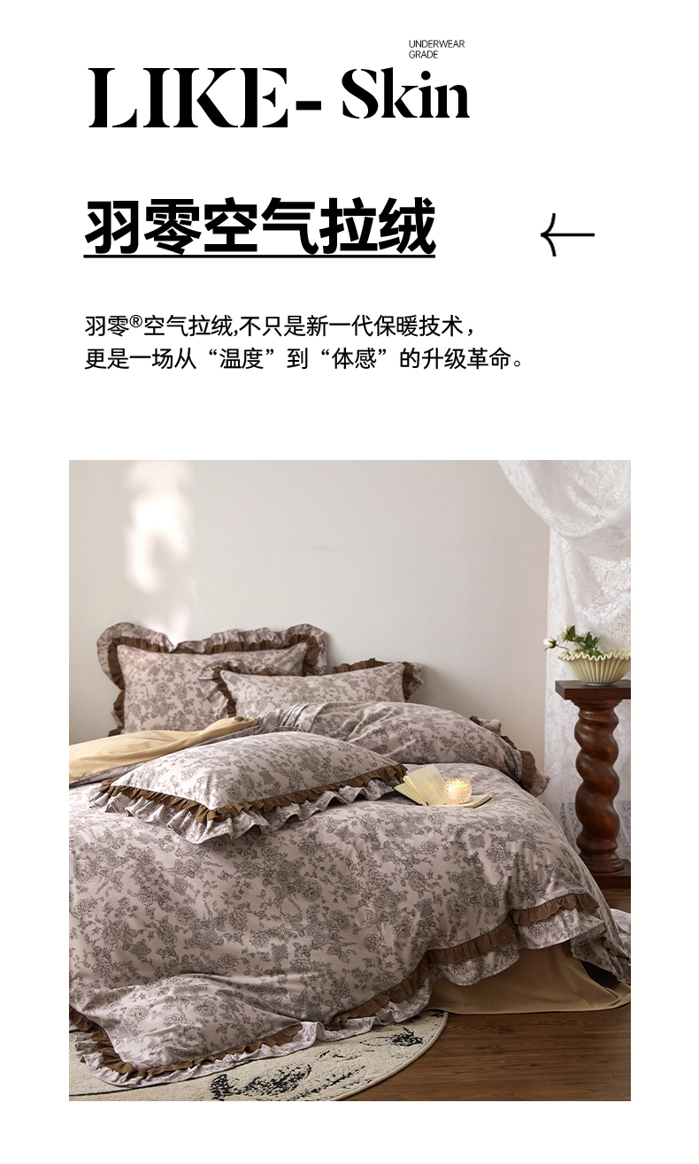 金奇达家纺 2025新款A类保暖羽零™空气拉绒加厚法式荷叶边四件套热肤膜【森屿集】(会员减50元) 热肤膜【森屿集】系列,标准号全网控价(折后券后)不低于228元 朗月弥冬