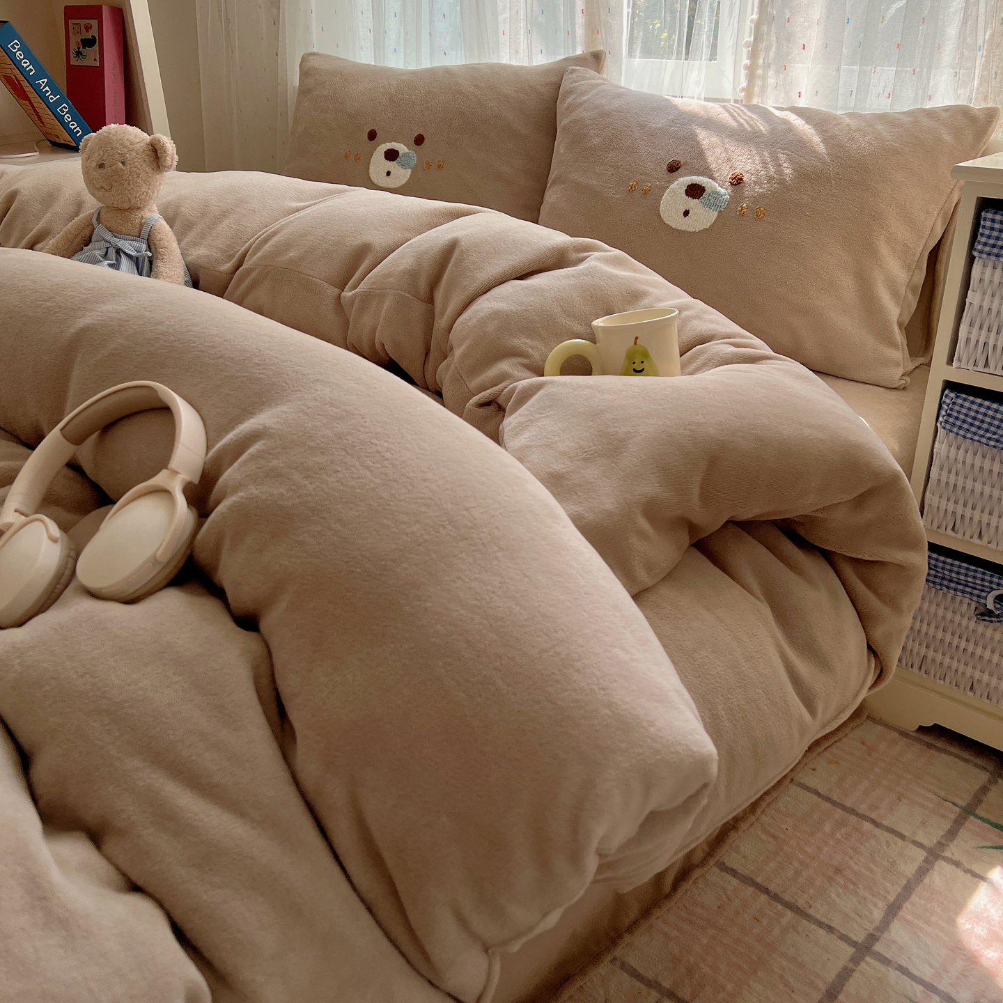 顾里家纺 2025新款可爱表情包毛巾绣牛奶绒四件套 大耳狗