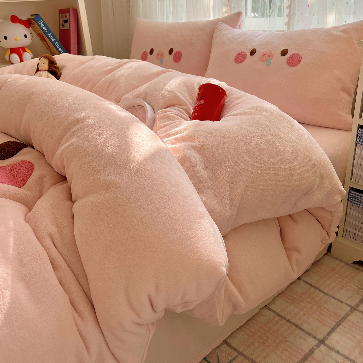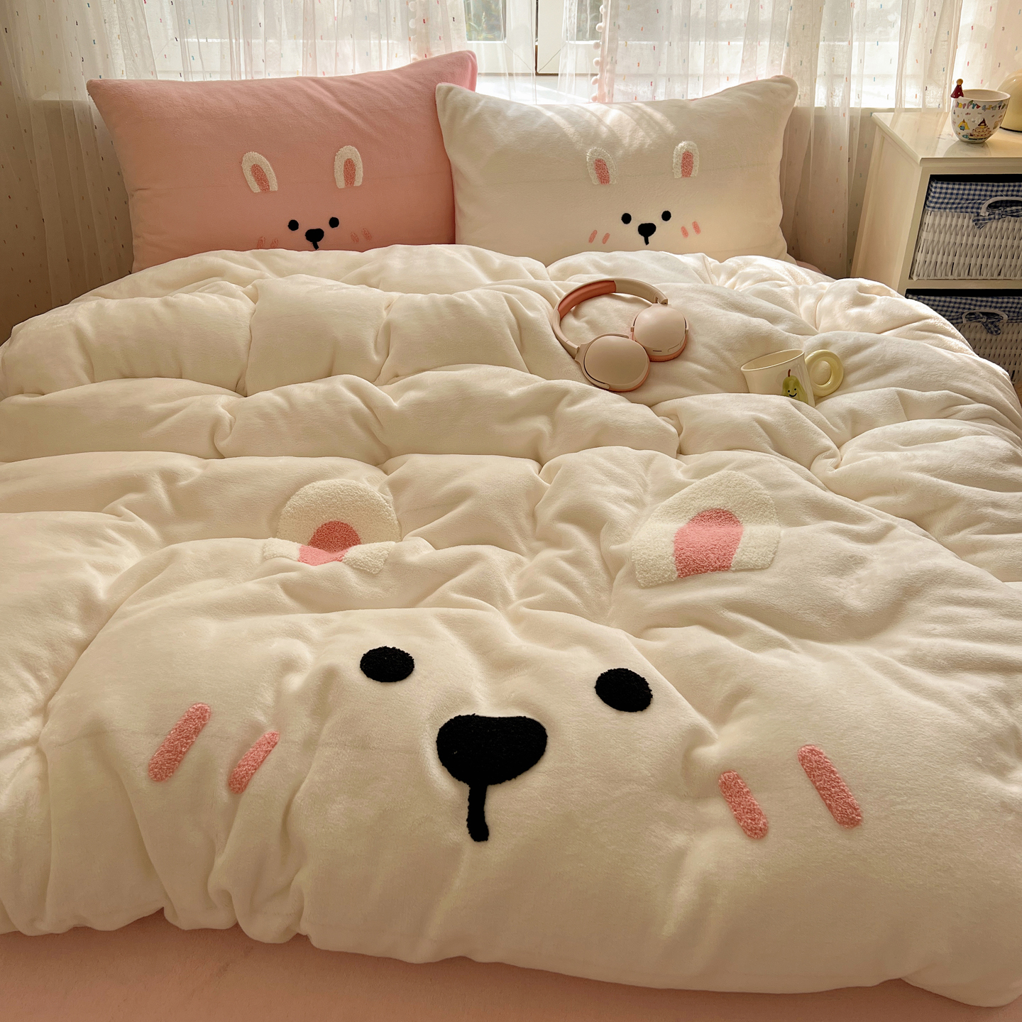 商品名称:顾里家纺 2025新款可爱表情包毛巾绣牛奶绒四件套 大耳狗