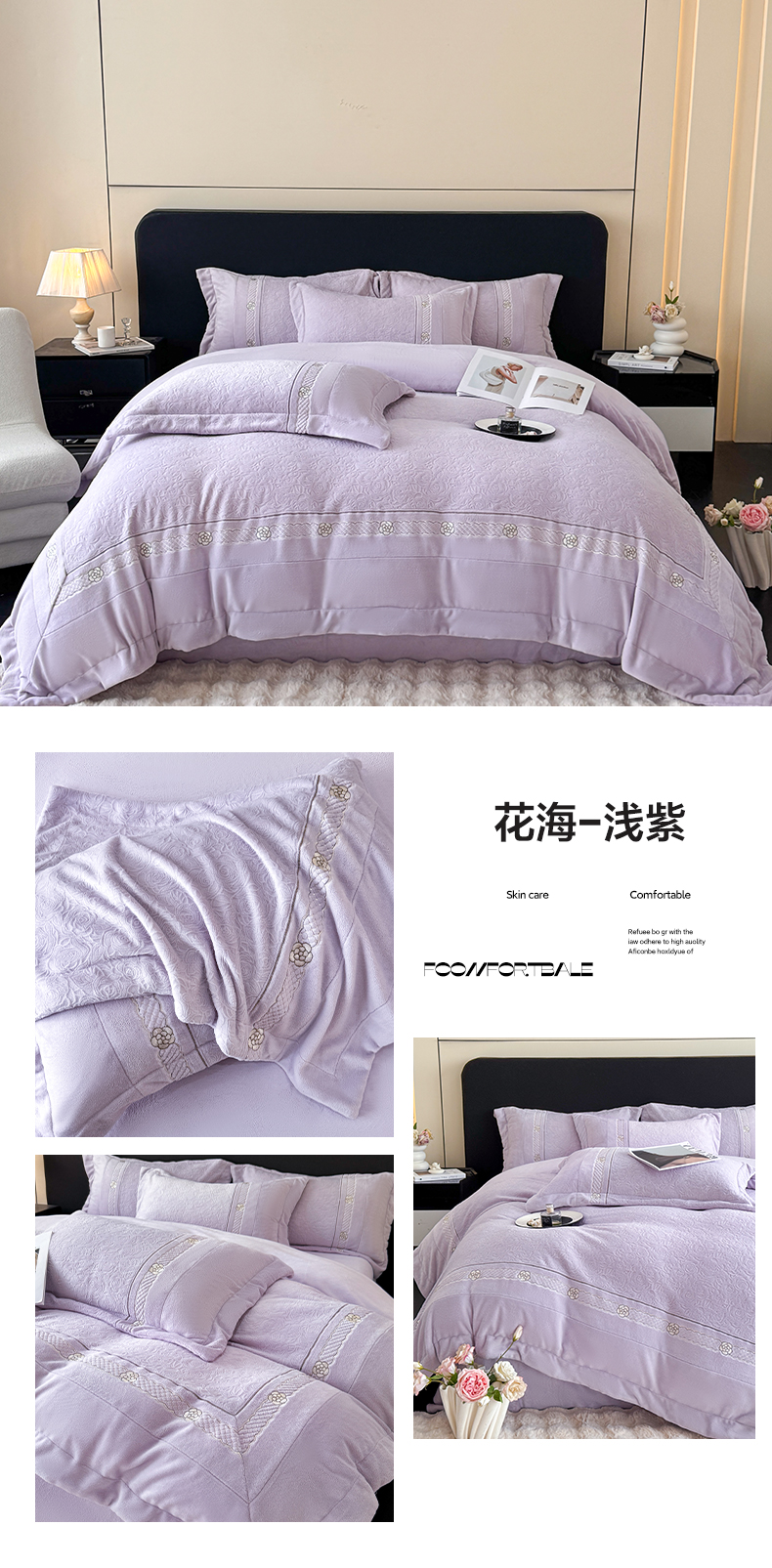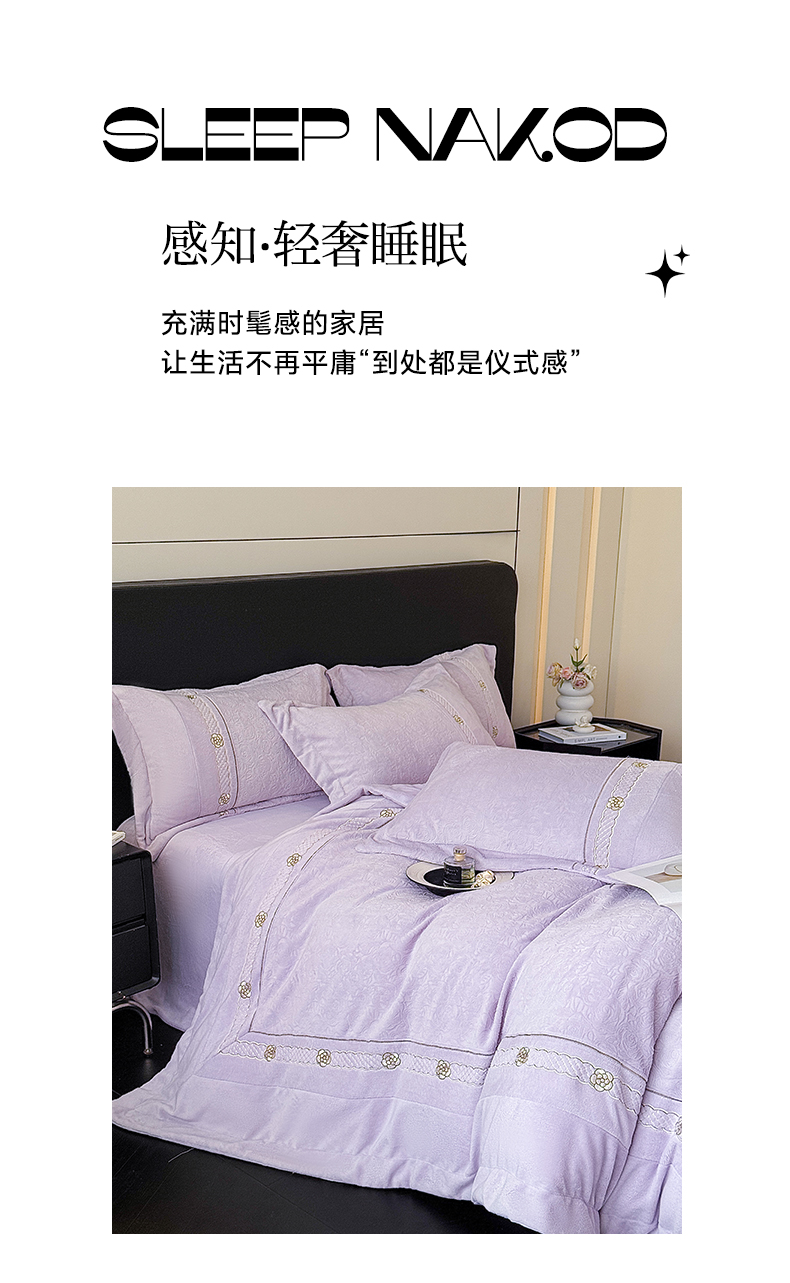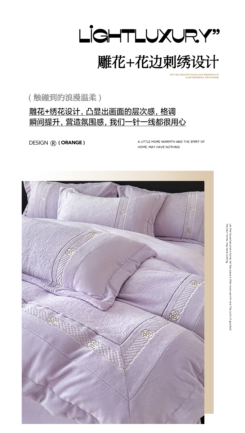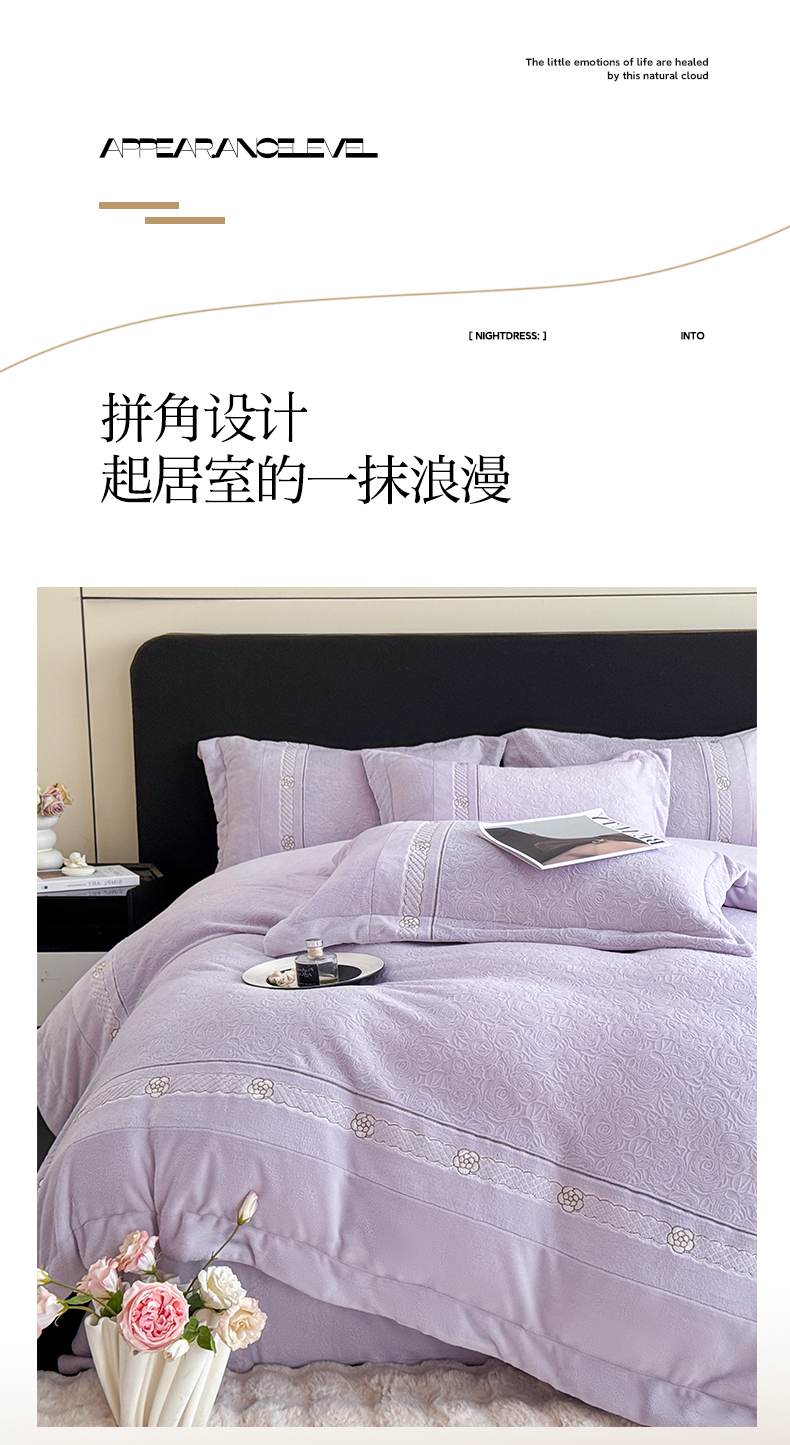 商品名称:博纳家纺 2025新款230克雕花绒法式花边刺绣加厚牛奶绒四件套-花海 控价劵后248(严格按控价来) 花海-浅紫