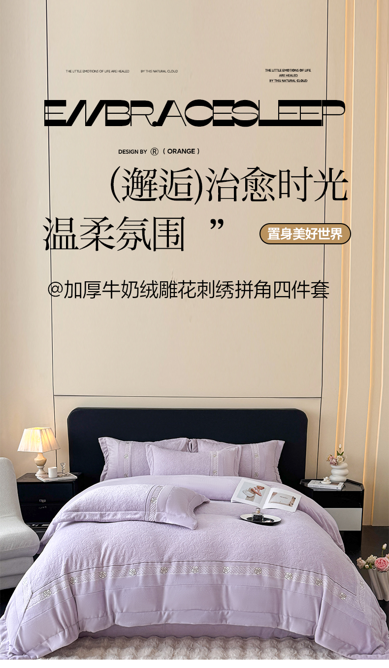 (总)博纳家纺 2025新款加厚牛奶绒雕花刺绣四件套-飞羽 控价劵后168(严格按控价来),飞羽-繁星蓝,飞羽-浅紫,飞羽-香槟