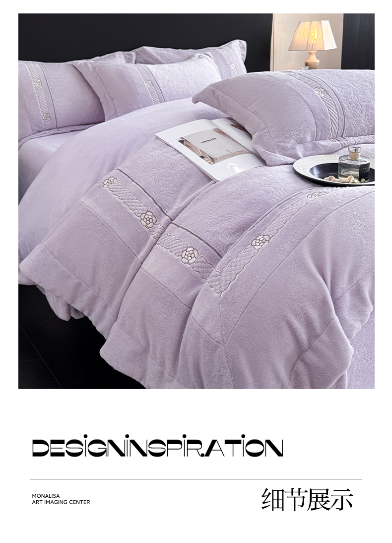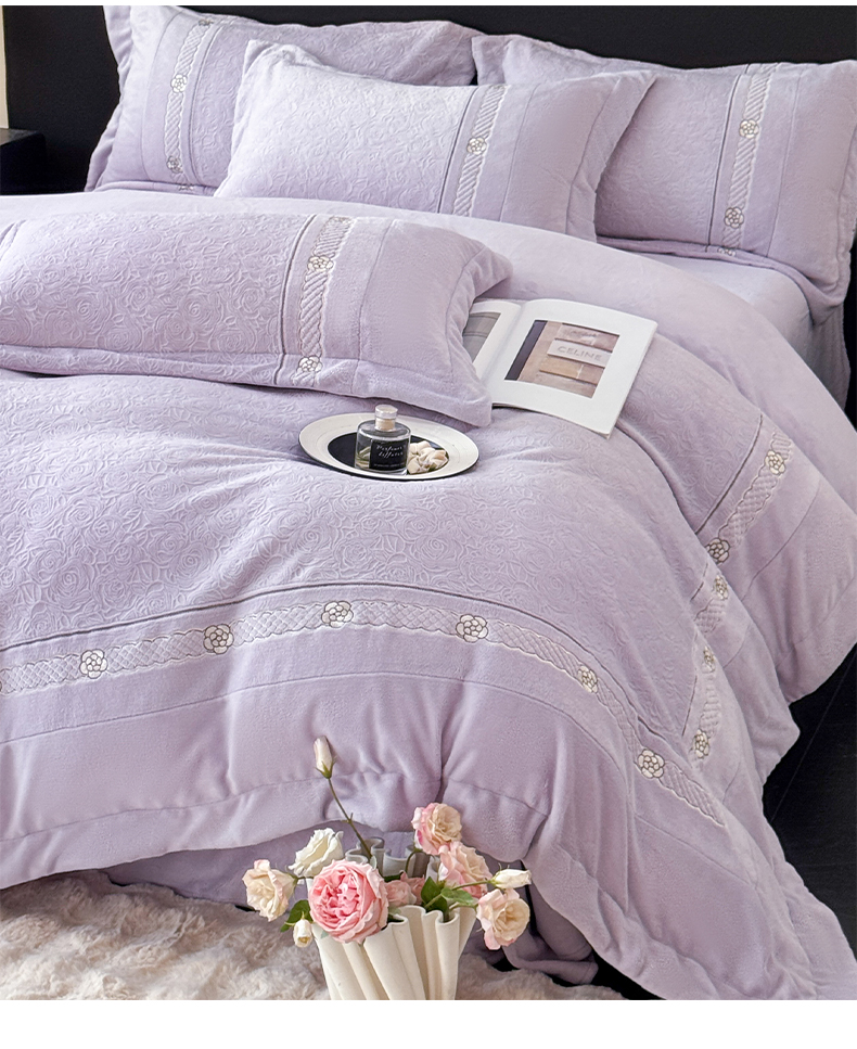 博纳家纺 2025新款230克雕花绒法式花边刺绣加厚牛奶绒四件套-花海 控价劵后248(严格按控价来) 花海-浅紫
