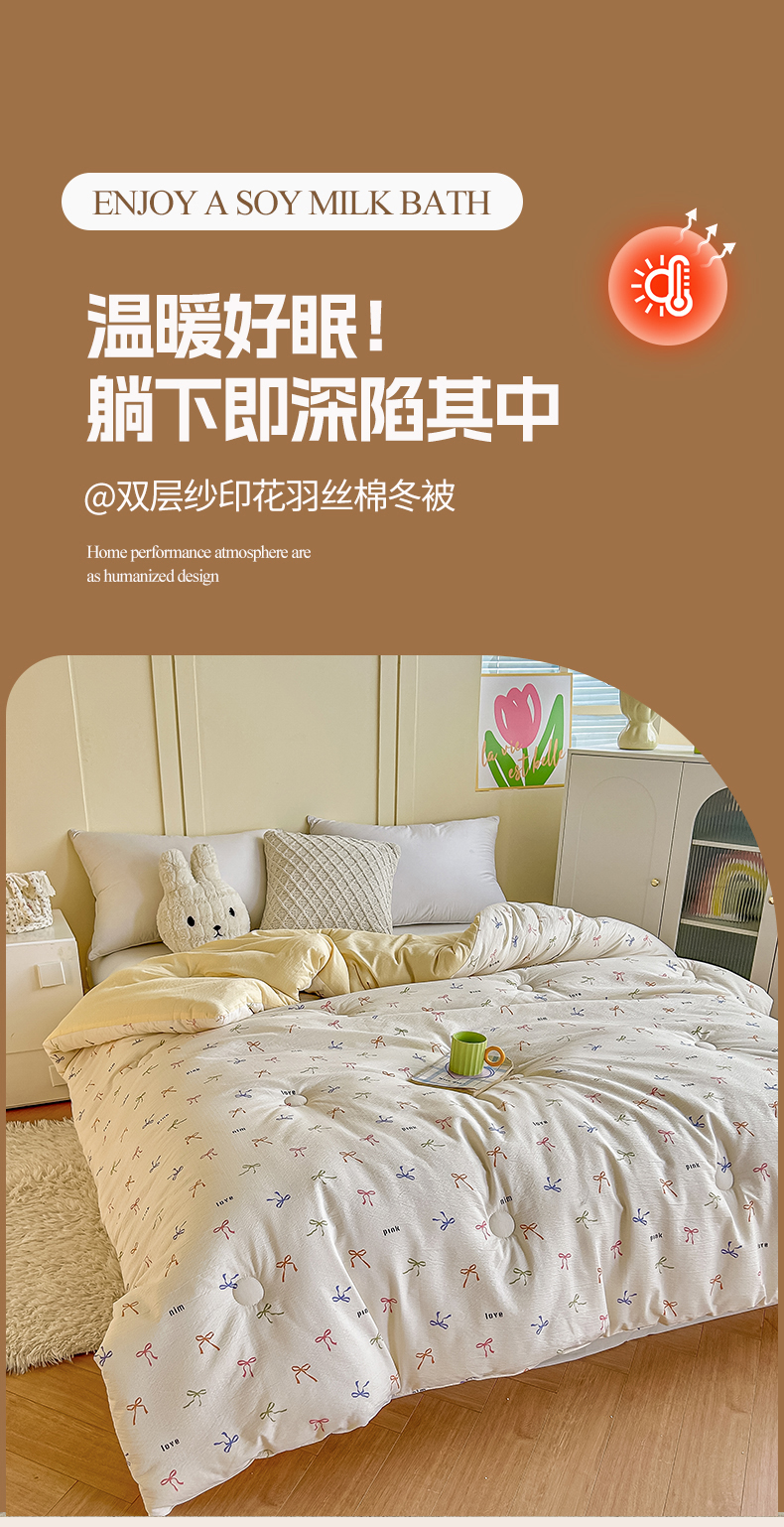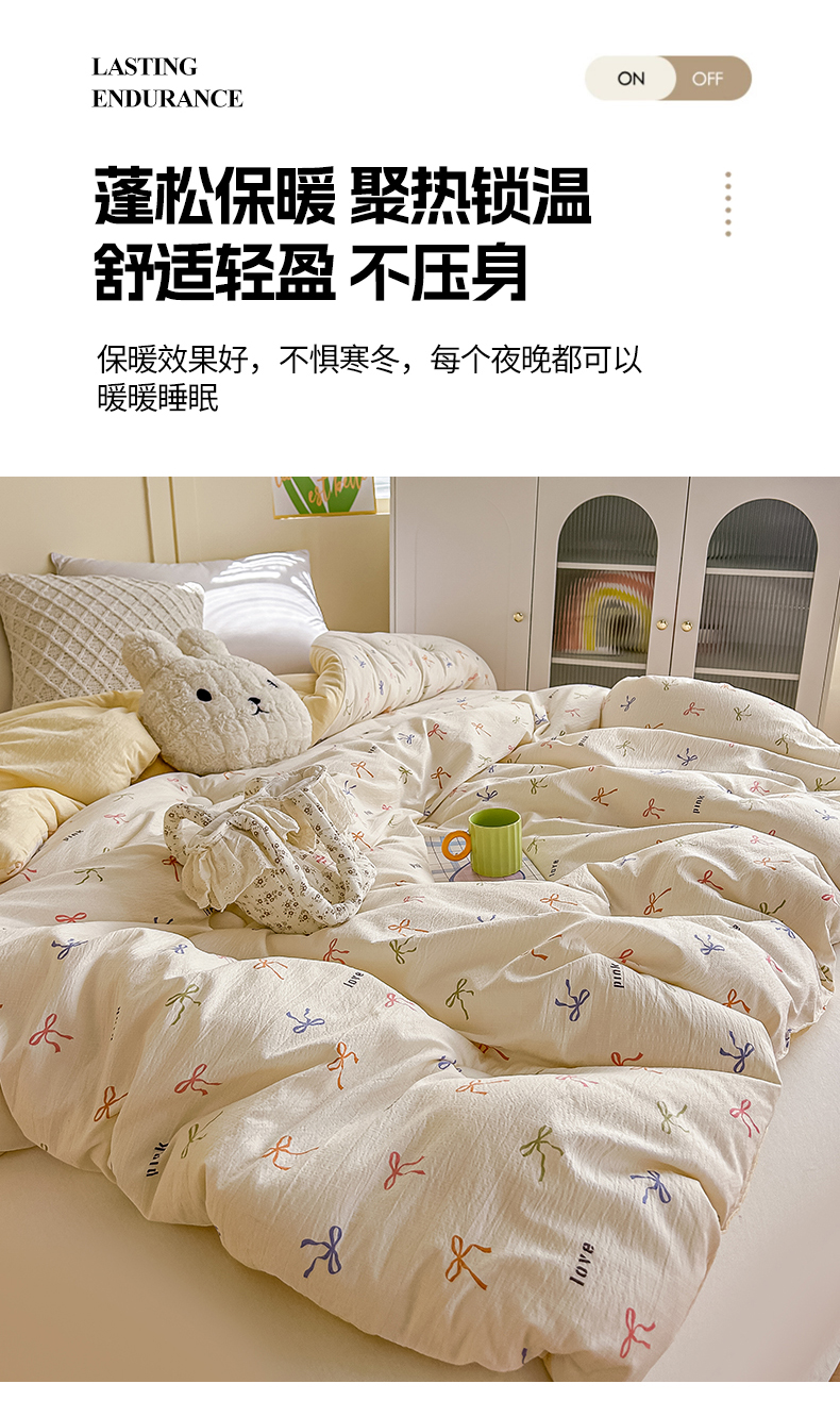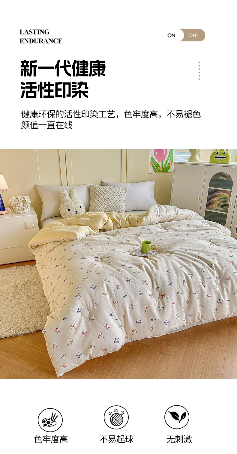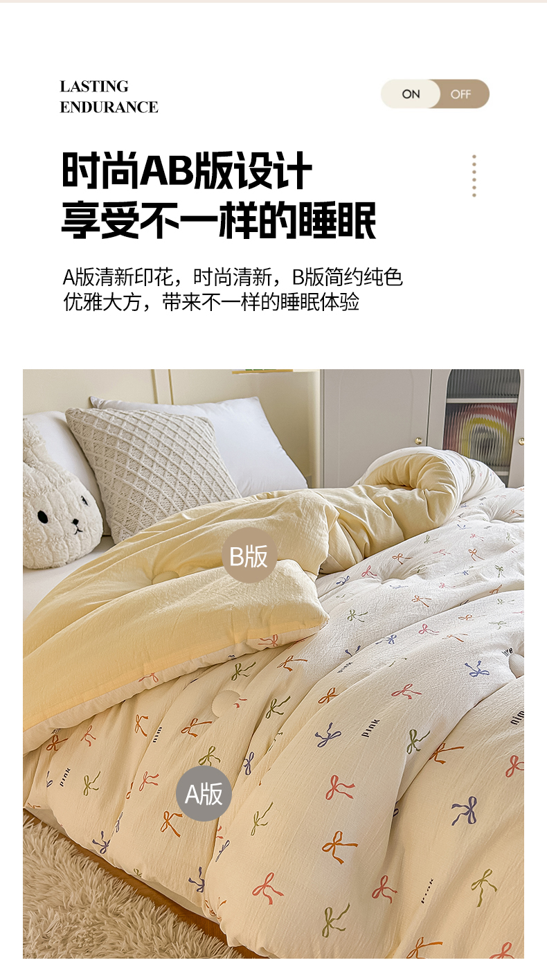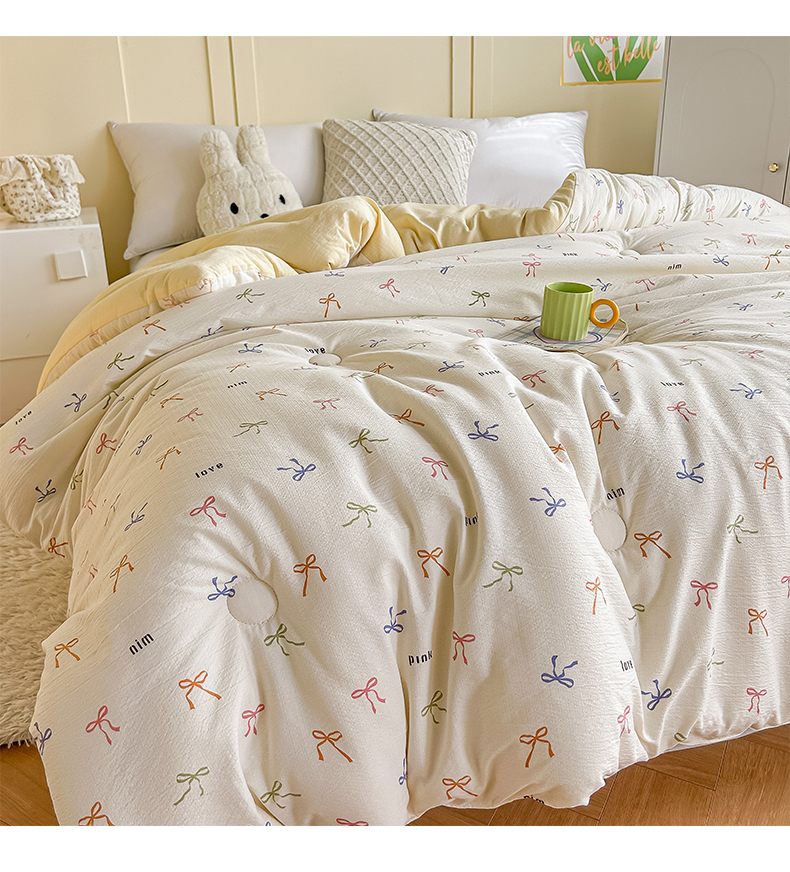 • 91家纺网 家纺一手货源 找家纺 佳鸿家纺 2025新款云感双层纱冬被软糯云朵棉春秋被被子加厚被芯 彩色蝴蝶结