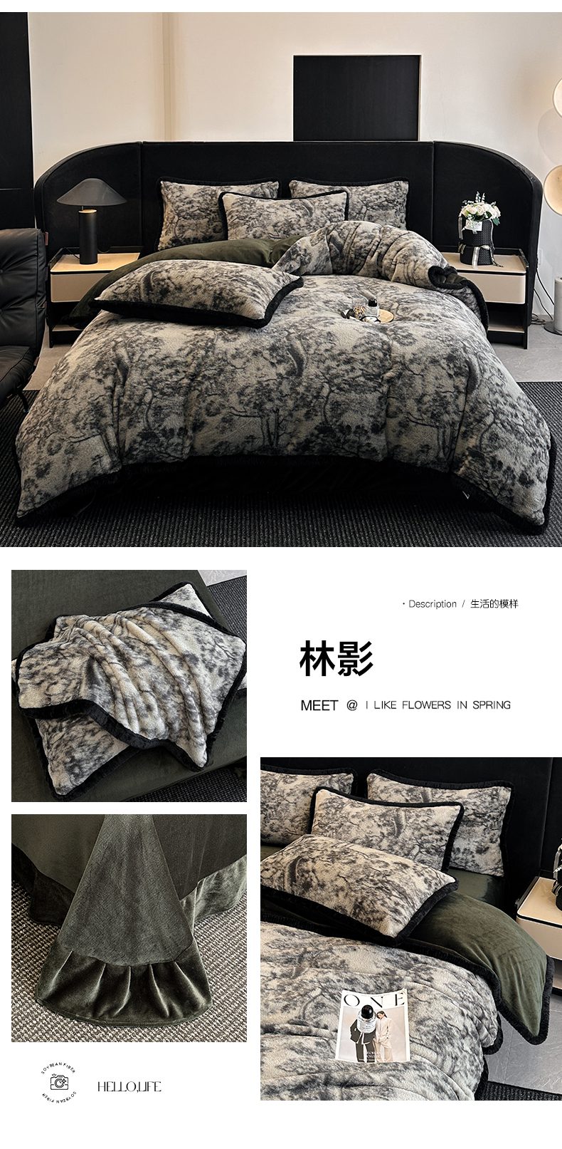 商品名称:畅畅家纺 2025新款高克重新款冬季加厚兔毛绒包边款床单床笠四件套 月影-灰