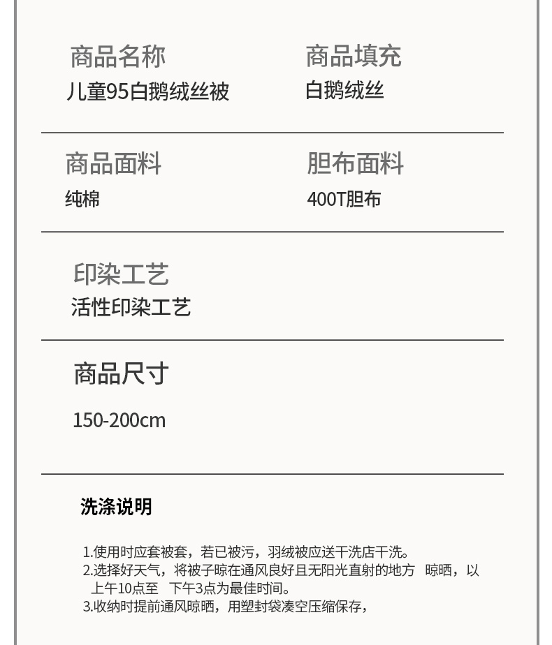 150*200cm 300克绒 春夏 | ¥289.00 |