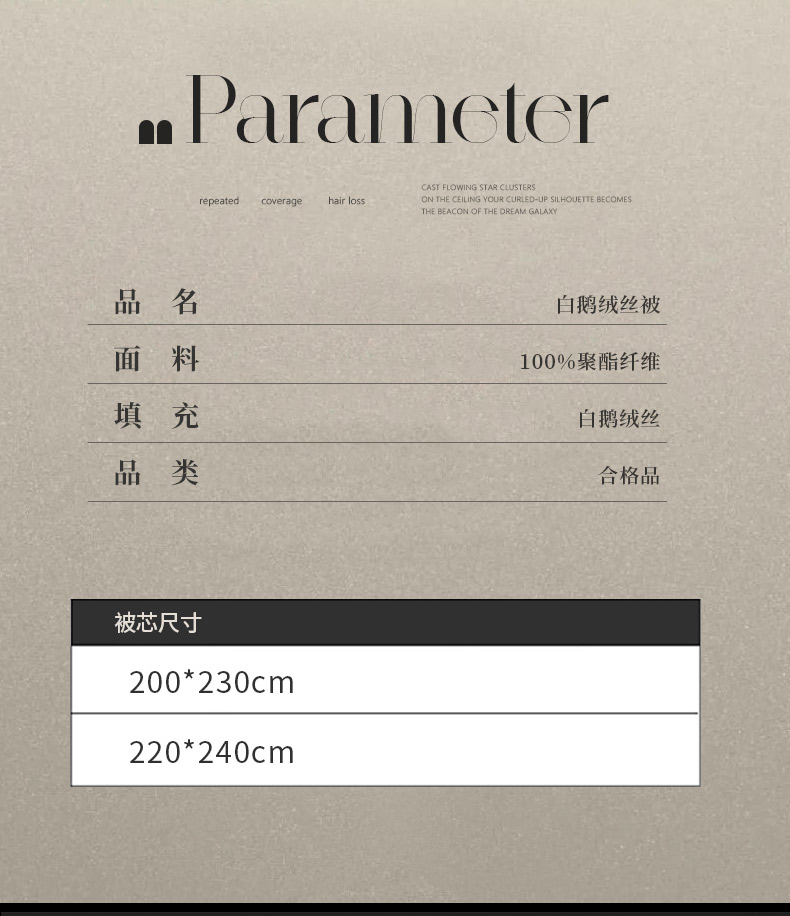 白鹅绒丝220*240填充1200克春秋被 | ¥475.00 |