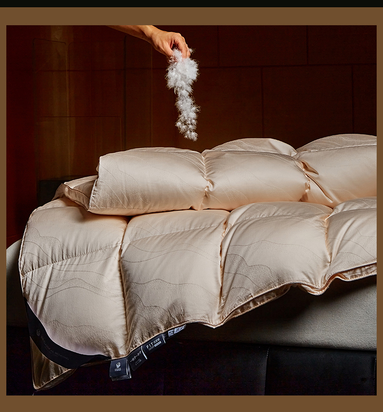 • 91家纺网 家纺一手货源 找家纺 (总)暖羽屋羽绒馆 2025新款国标95白鹅绒被子 绒子含量95羽绒被芯 双人2米加大冬被 婚庆羽绒被秋冬被,恒运莱 金-角度一,恒运莱 金-角度二