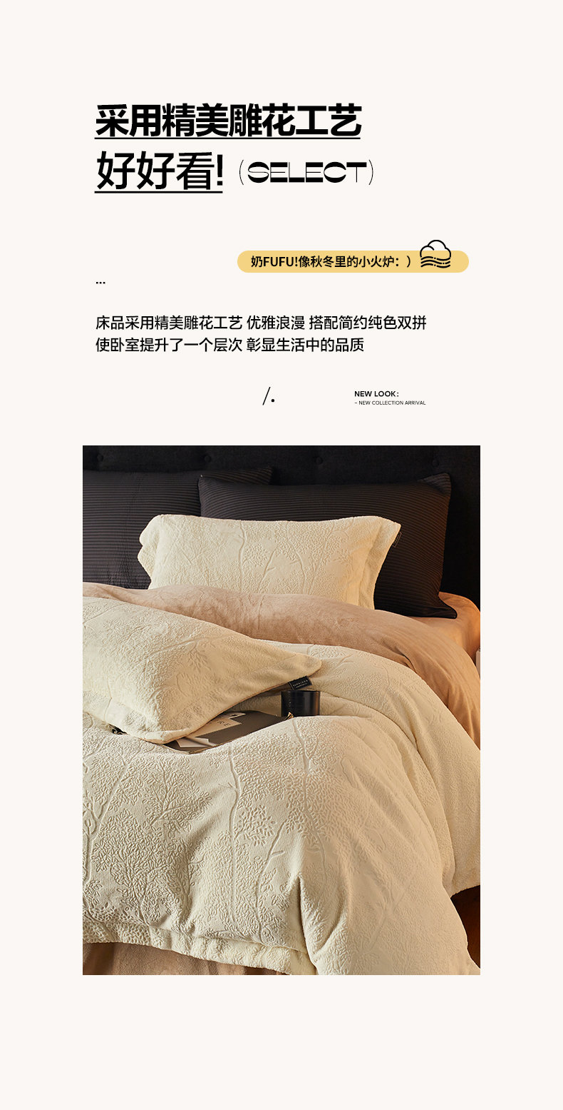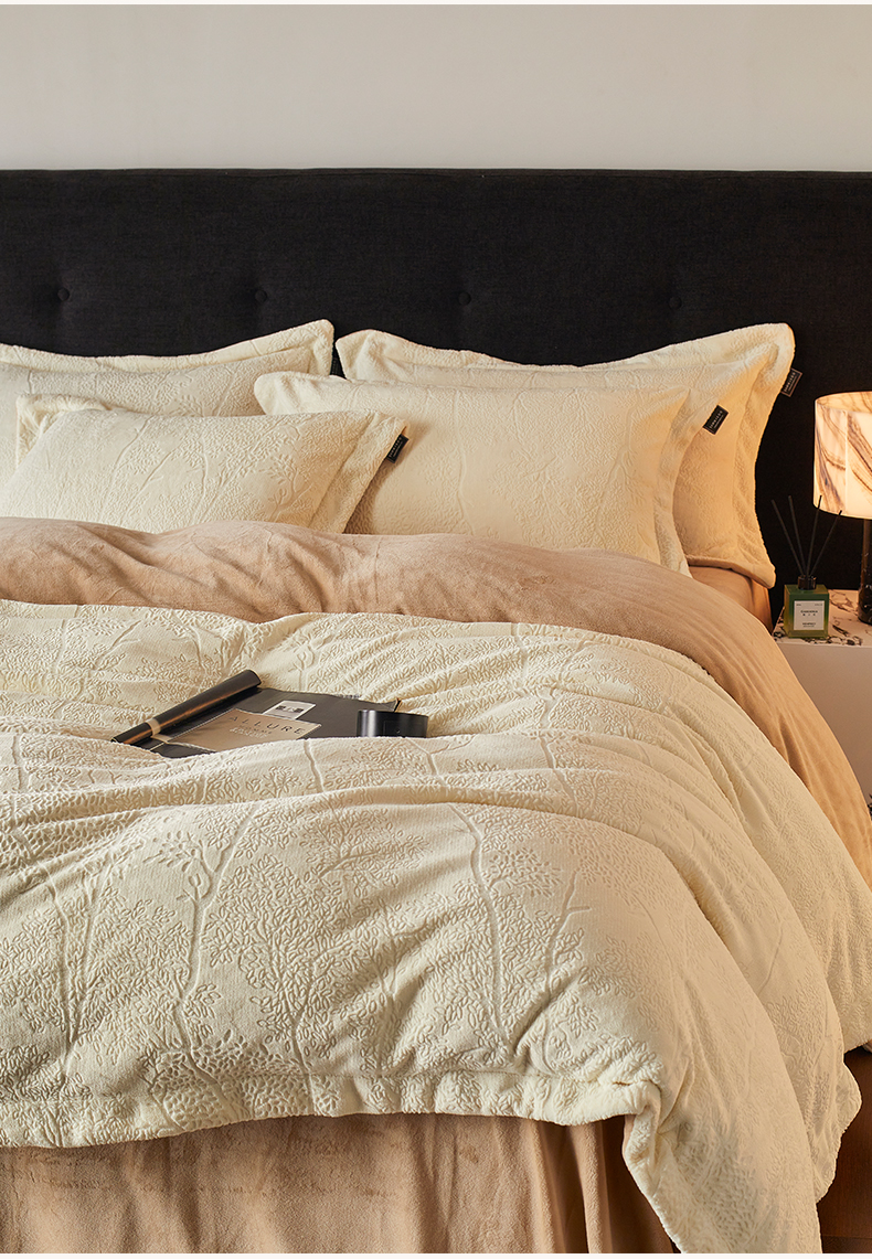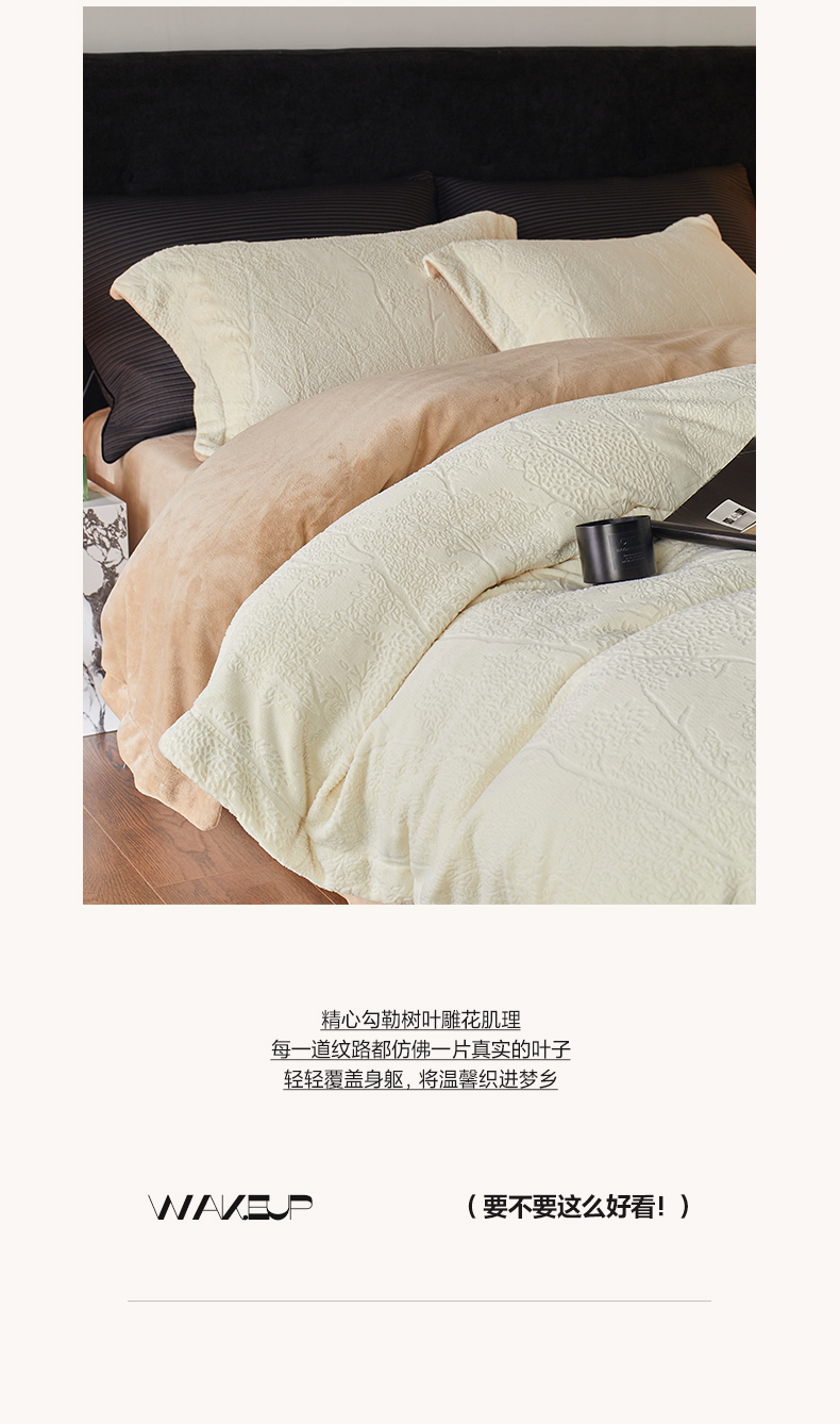 当前位置: 91家纺网 > 商品网购 > 床品套件 > 四件套 > 牛奶绒四件套 > 三味舒屋 2025新款铂金暖绒全消光轻奢雕花牛奶绒四件套-苔原绪叶 苔原绪叶奶白