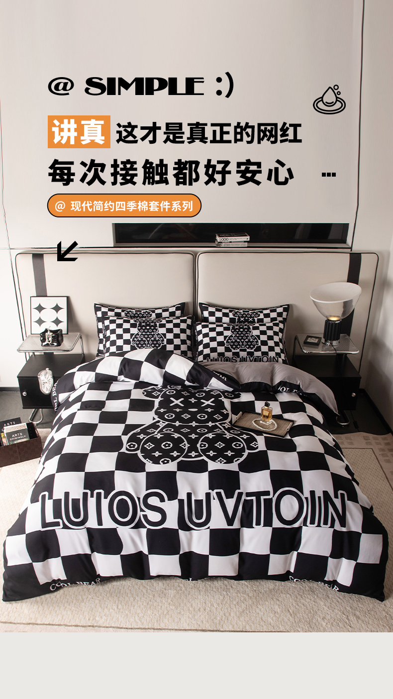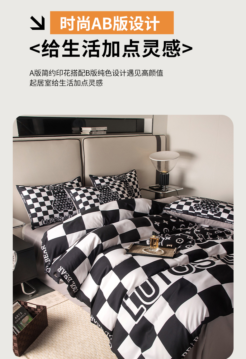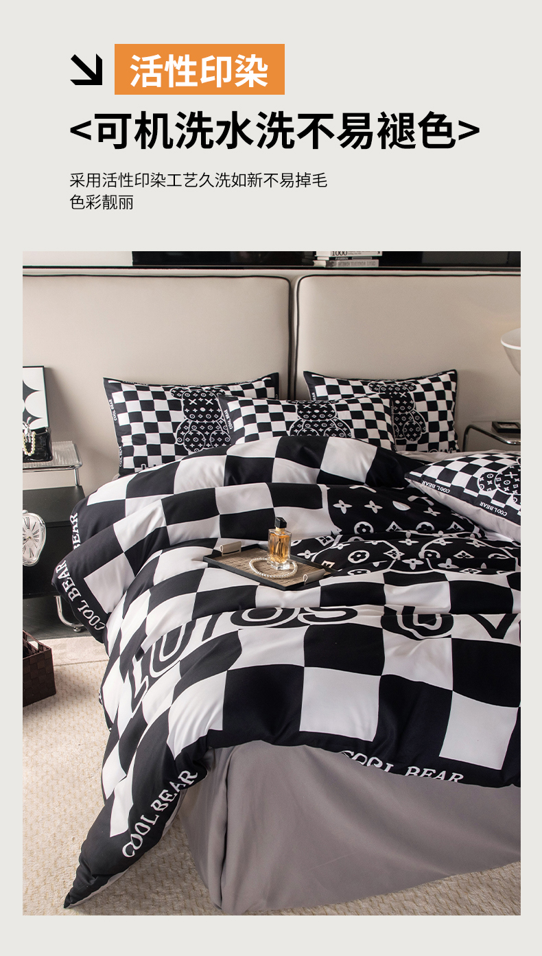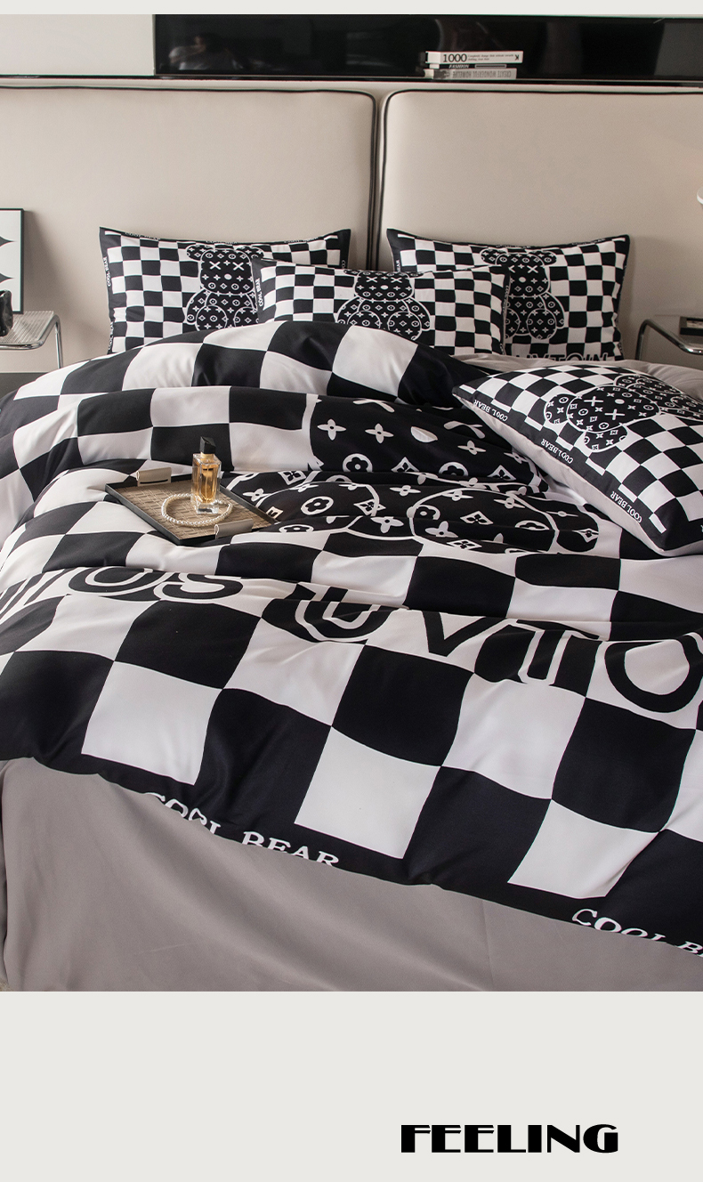 色鬼布艺高端家居主号 2025新款直播热款网红款四季棉四件套 棋盘格公仔
