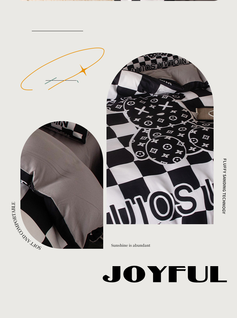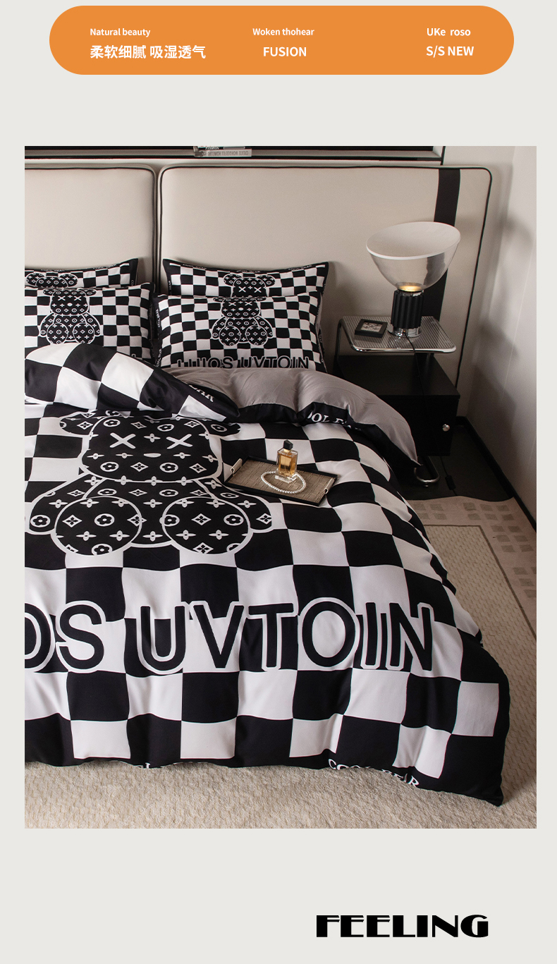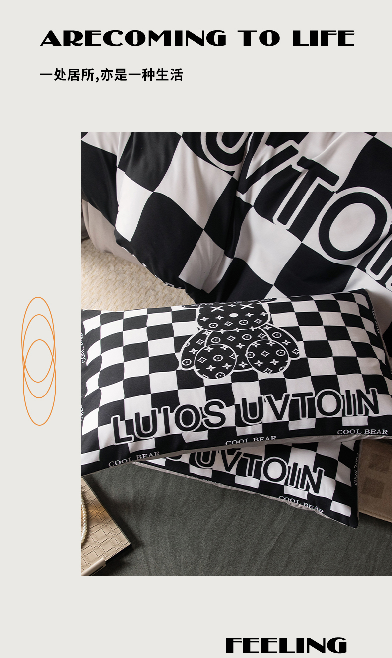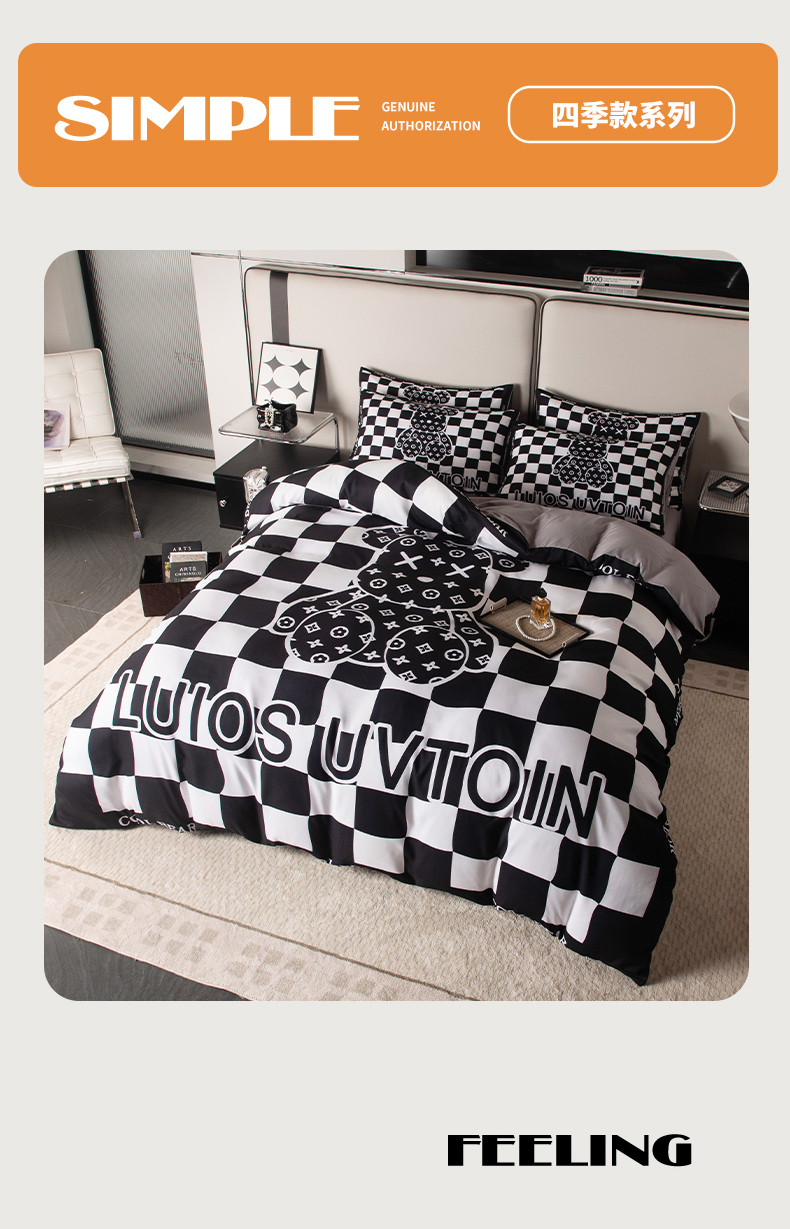 色鬼布艺高端家居主号 2025新款直播热款网红款四季棉四件套 棋盘格公仔