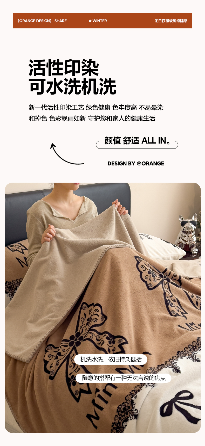 慕木家纺 2025新款高克重印花仿羊绒双层毛毯毛毯毯子(可供跨境提供买家秀) 冰蓝格序-黄