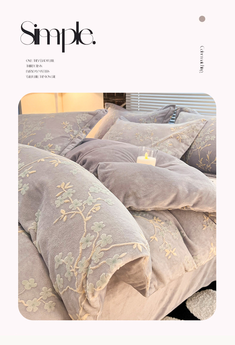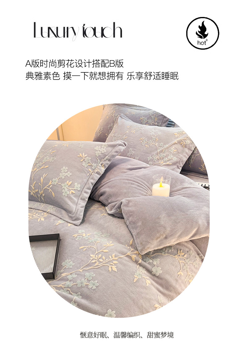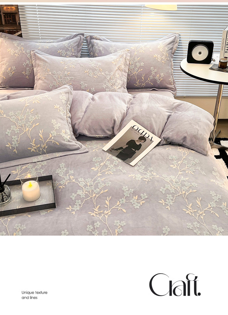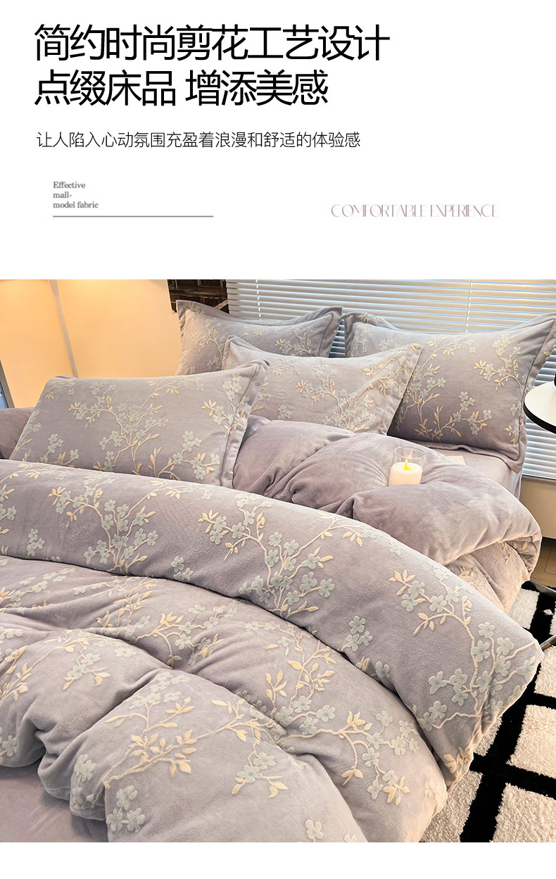 当前位置: 91家纺网 > 商品网购 > 床品套件 > 四件套 > 牛奶绒四件套 > 寐居家纺 2025新款3D烂花牛奶绒四件套 花想容-紫灰