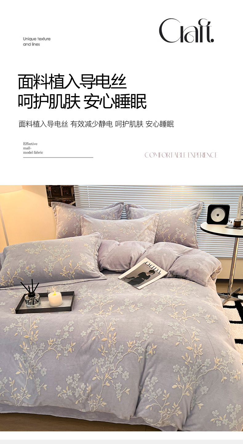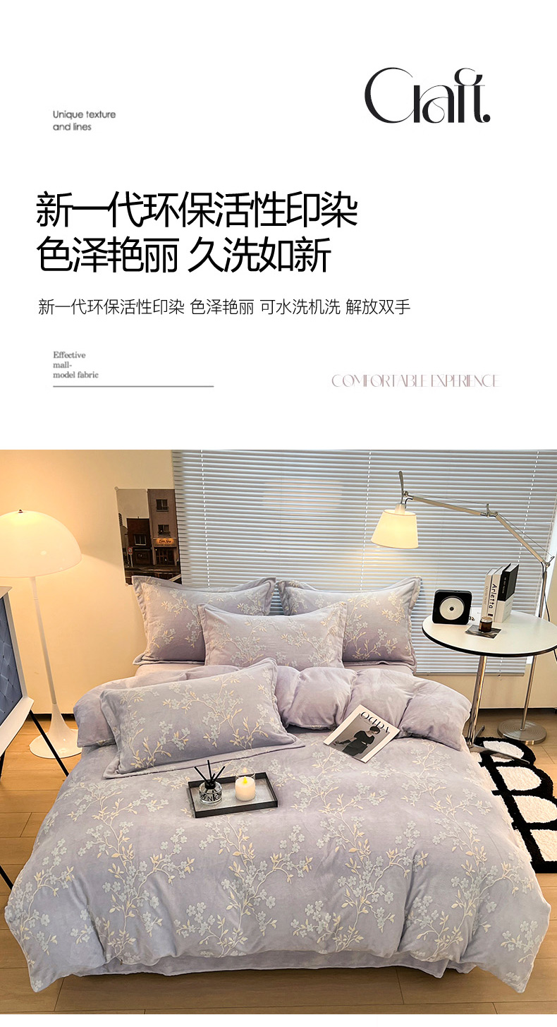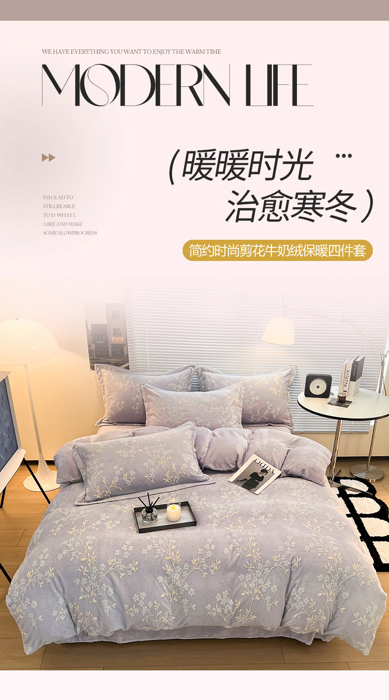 当前位置: 91家纺网 > 商品网购 > 床品套件 > 四件套 > 牛奶绒四件套 > 寐居家纺 2025新款3D烂花牛奶绒四件套 花想容-紫灰