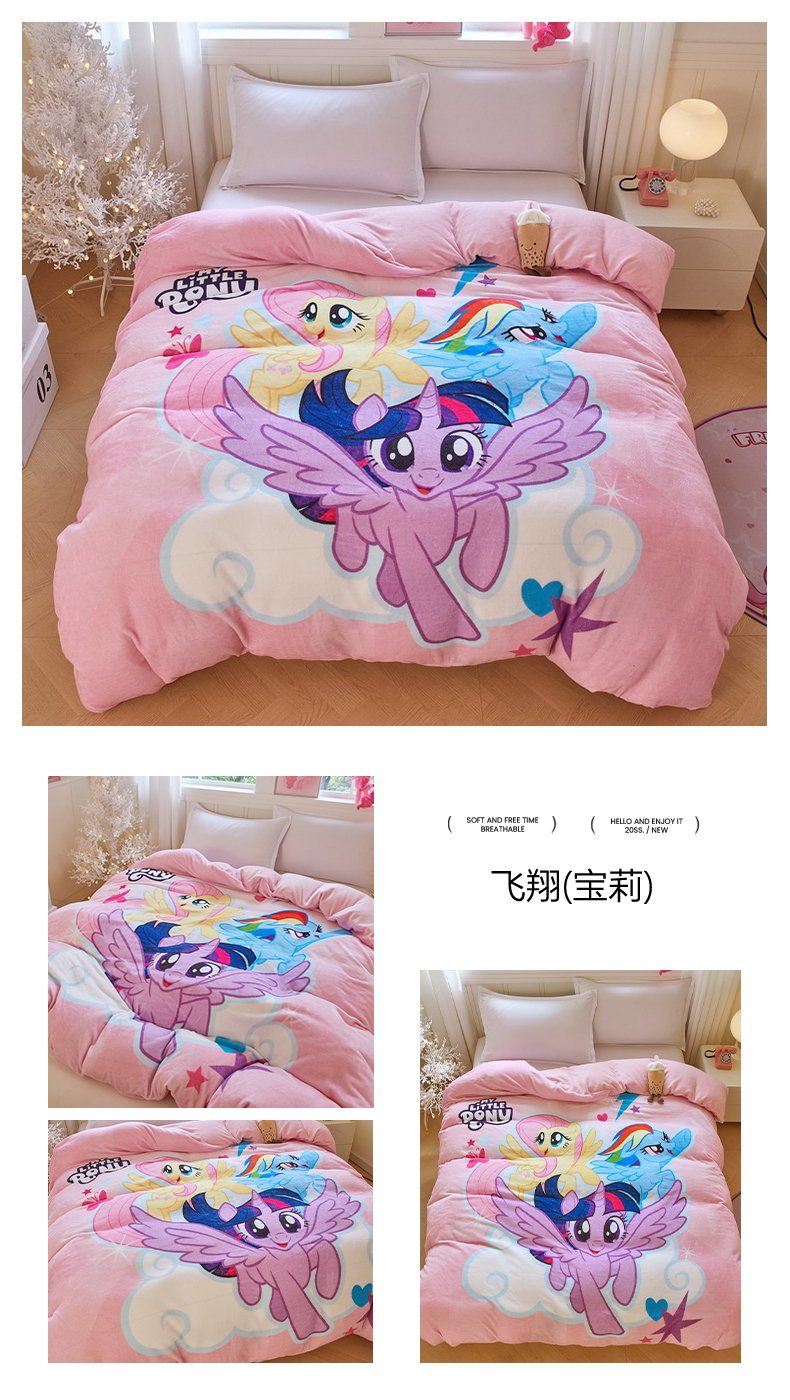 商品名称:蘭菲家纺 2025新款小马宝莉牛奶绒单被套 被套单件 伙伴-宝莉