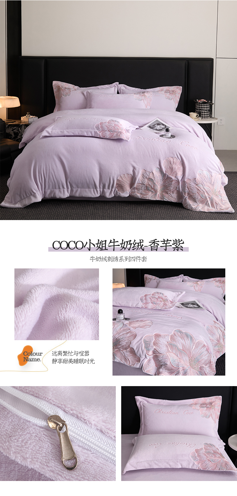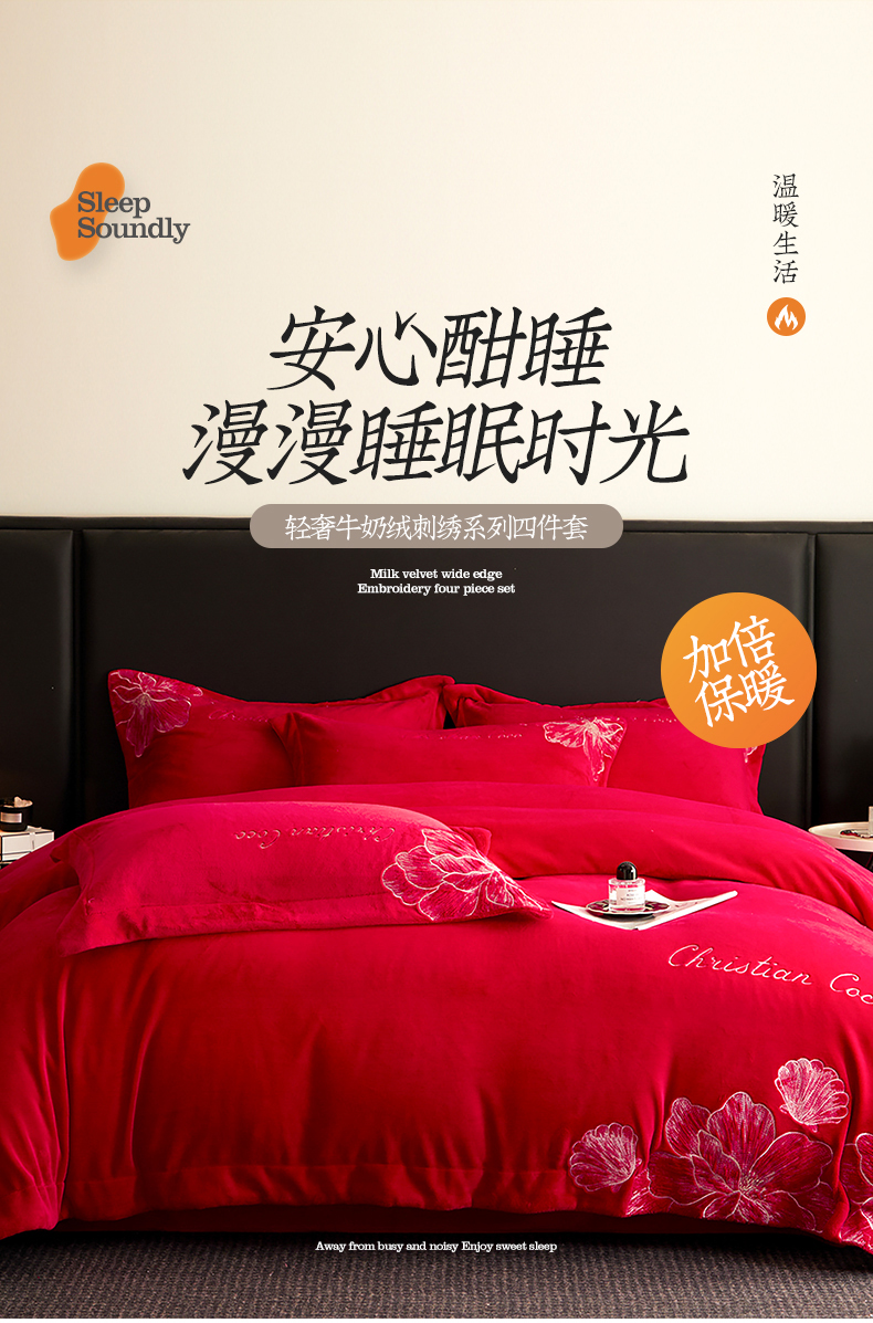 当前位置: 91家纺网 > 商品网购 > 床品套件 > 四件套 > 牛奶绒四件套 > 置顶家纺 2025新款轻奢刺绣牛奶绒四件套-COCO小姐系列 COCO小姐牛奶绒-大红