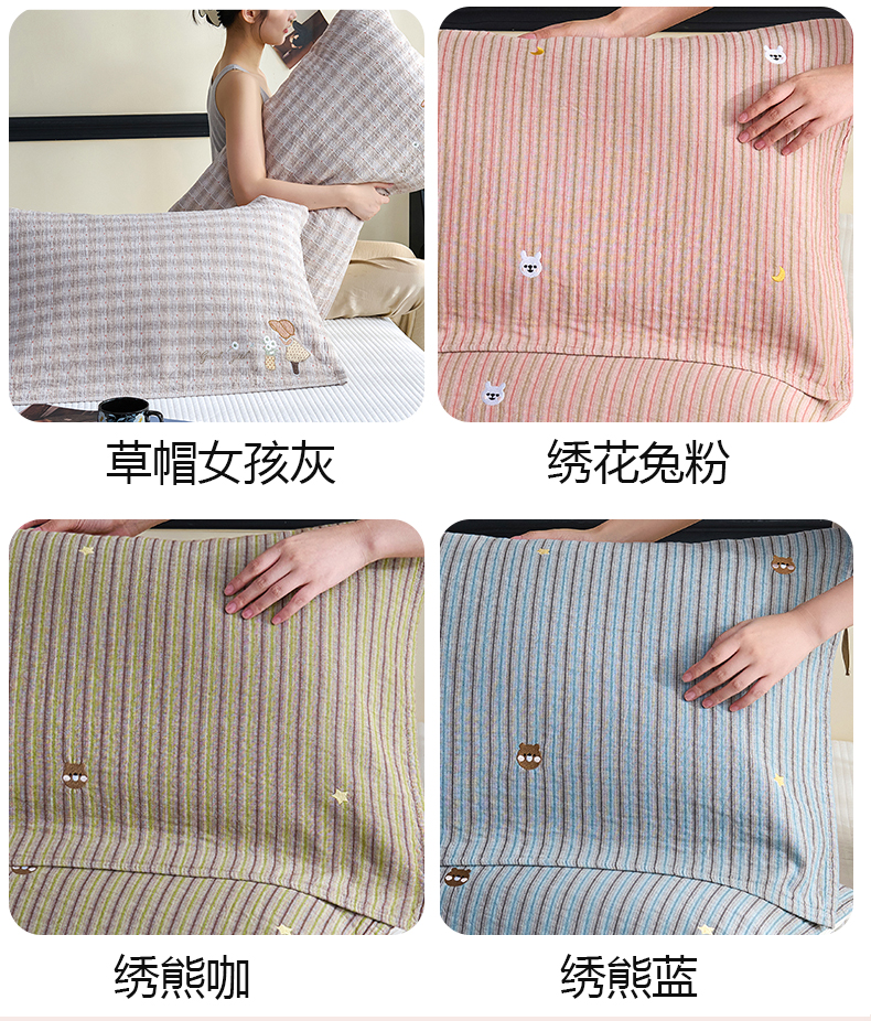 商品名称:棠薇家纺 2025新款全棉纱布枕巾绣花枕巾纯棉水洗枕巾卡通高档枕巾预缩水 草帽女孩粉
