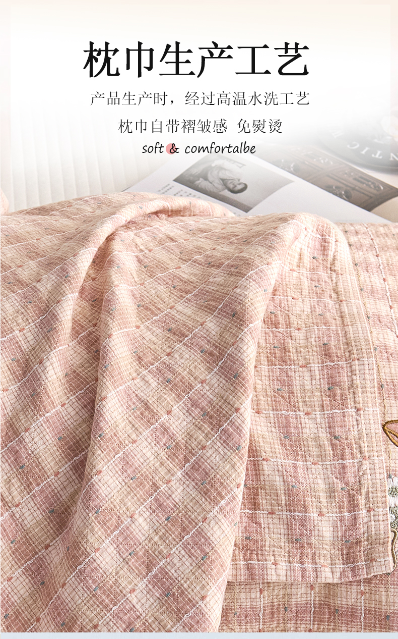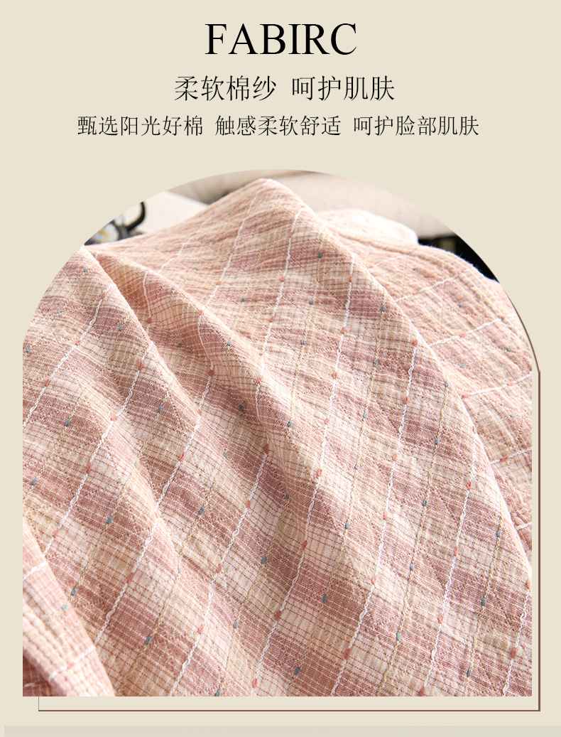 (总)棠薇家纺 2025新款A类加厚八层纯棉纱布小清新枕巾,格子乐园,花束咖边,时尚圆点,小花绿,小文艺粉,小文艺绿