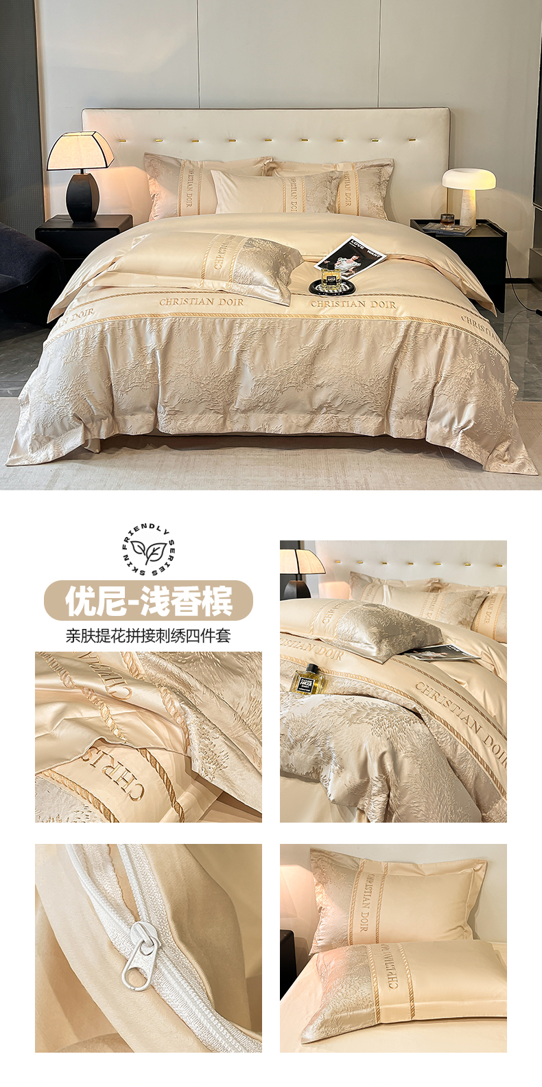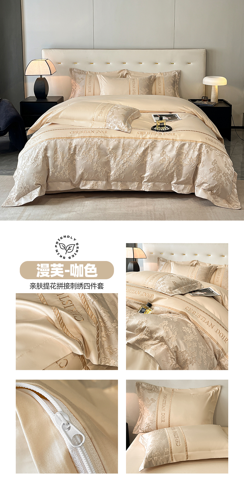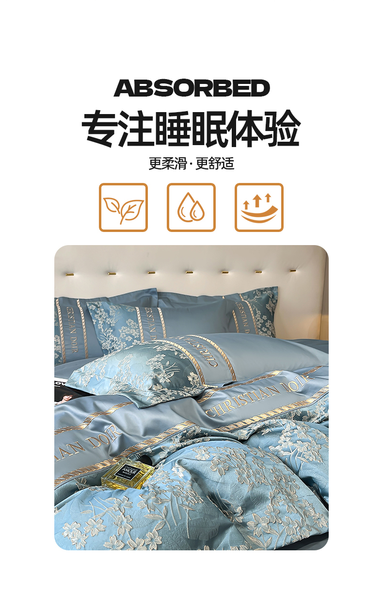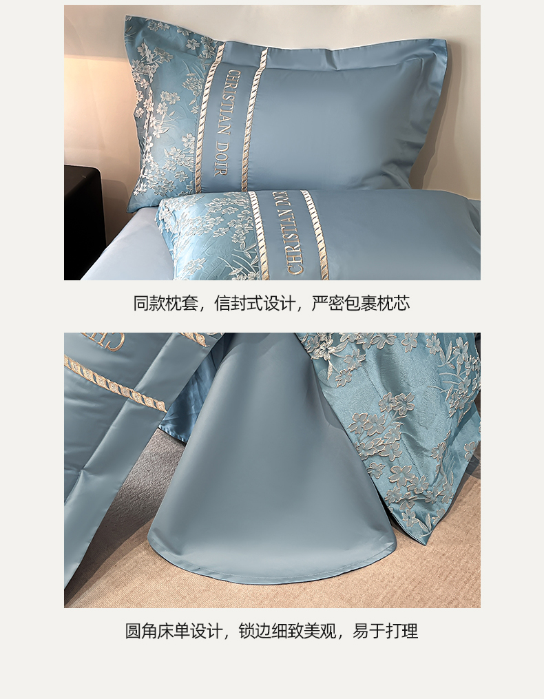(总)置顶家纺 2026新款亲肤棉玫瑰刺绣提花卡罗拉系列四件套,卡罗拉-碧蓝,卡罗拉-魅粉,卡罗拉-浅香槟,卡罗拉-天空蓝