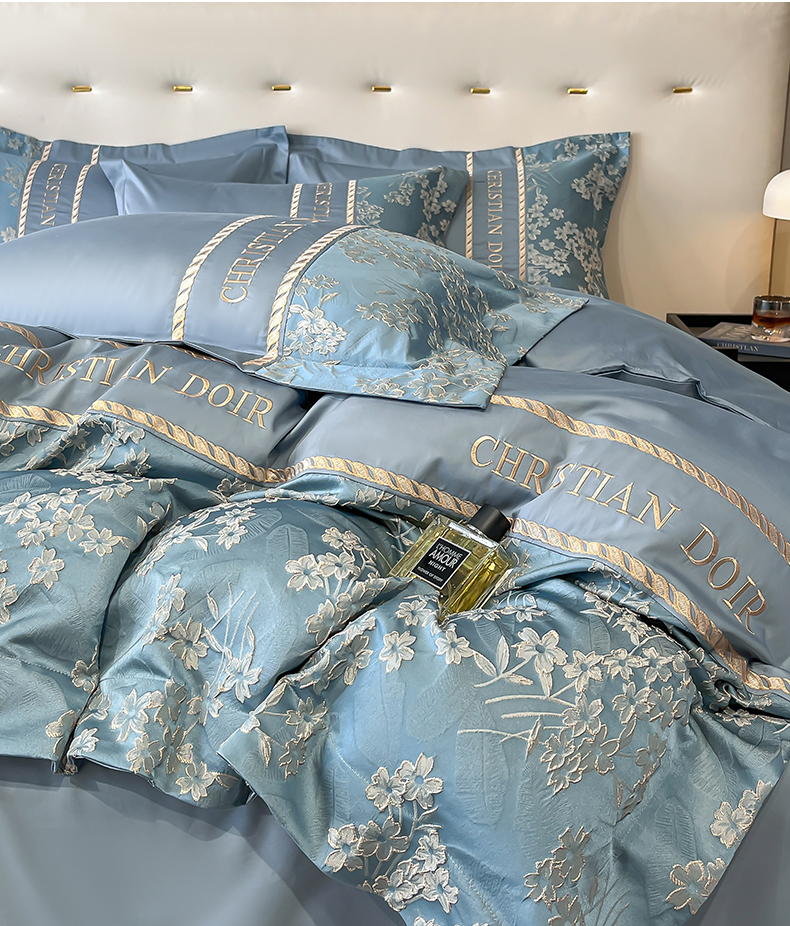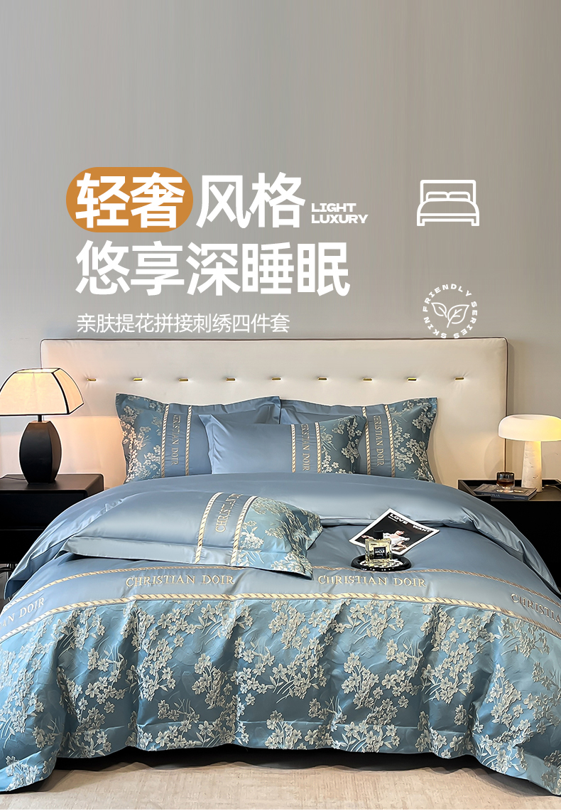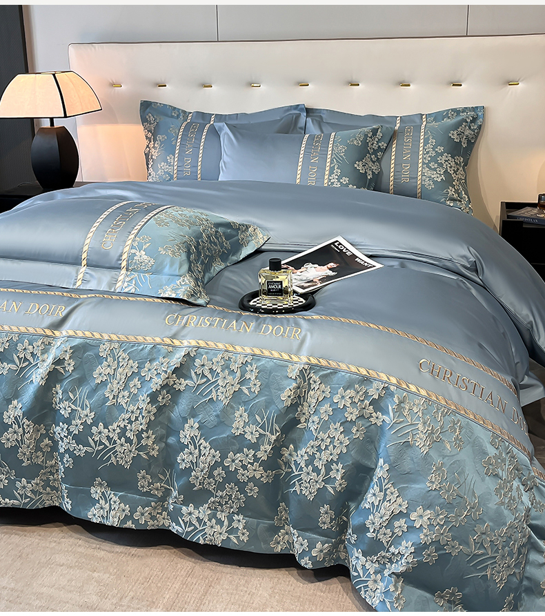 置顶家纺 2025新款漫芙提花亲肤系列四件套 漫芙-宾利蓝