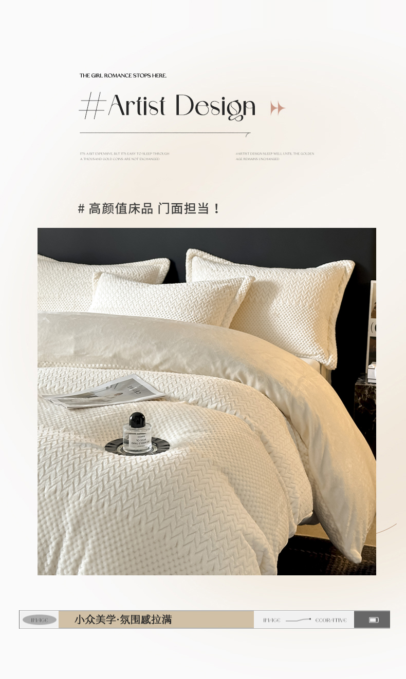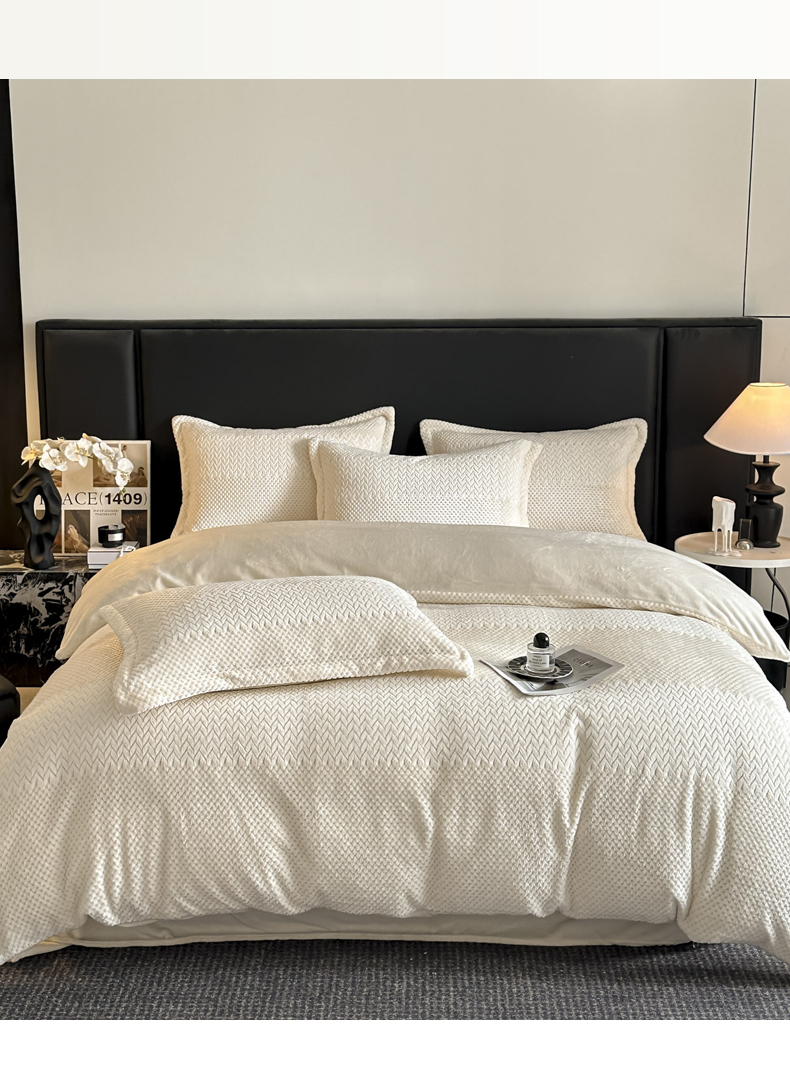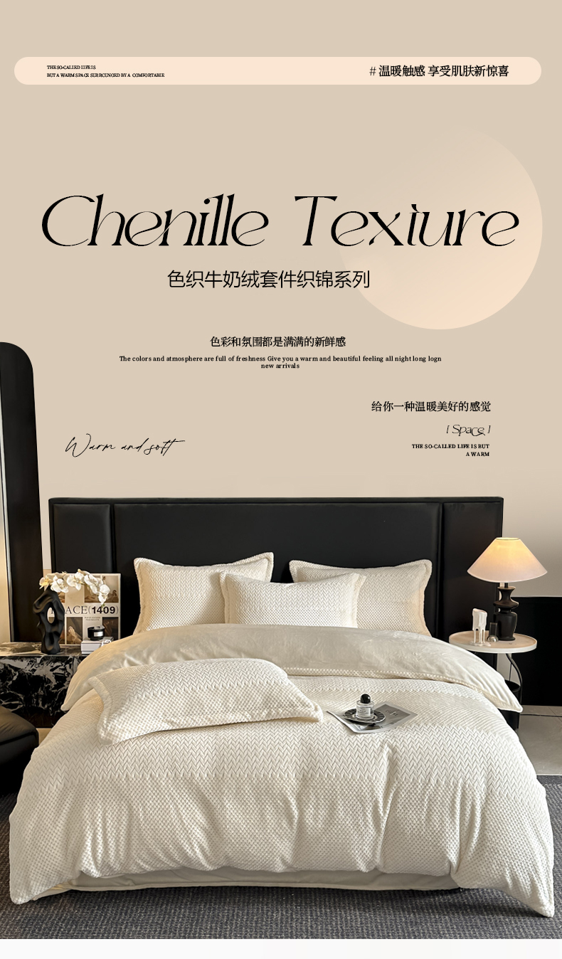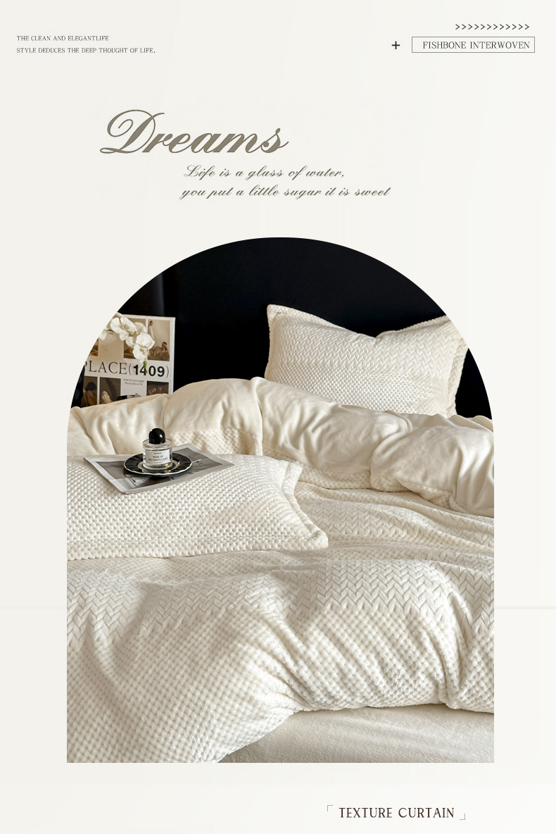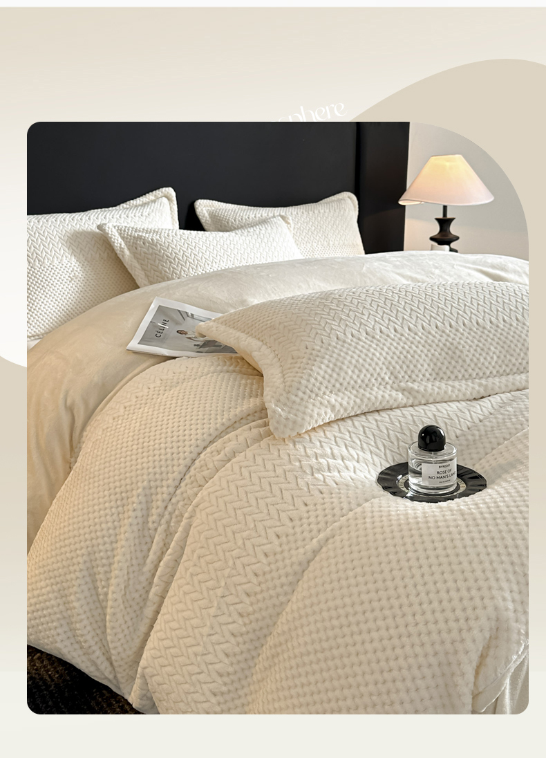 当前位置: 91家纺网 > 商品网购 > 床品套件 > 四件套 > 牛奶绒四件套 > 爱彼家纺 2025冬季新款色织拼色编织提花轻奢牛奶绒四件套-织锦系列 织锦-白露