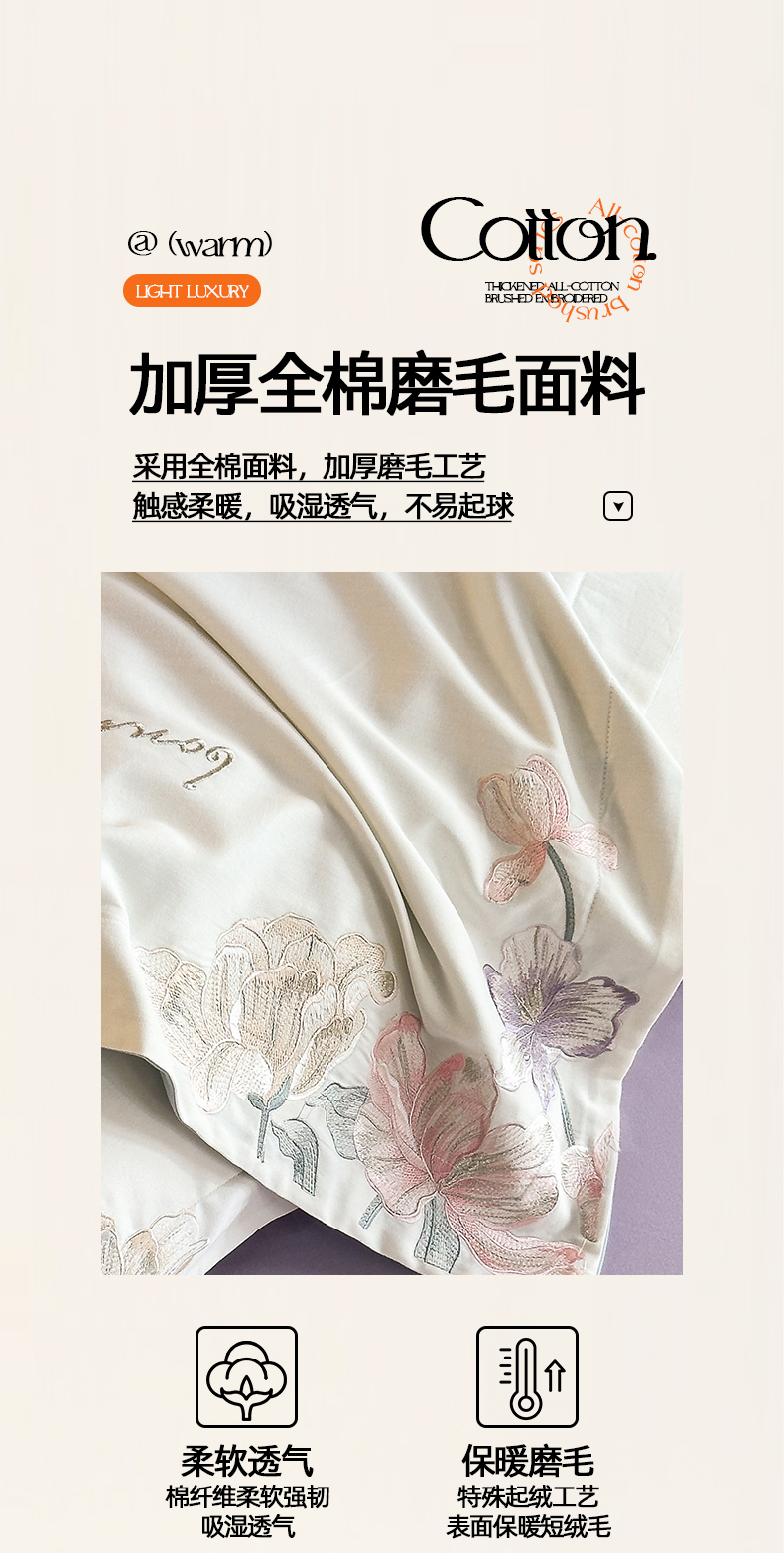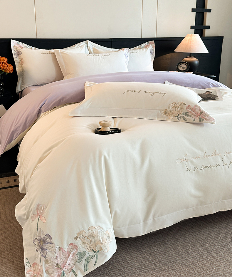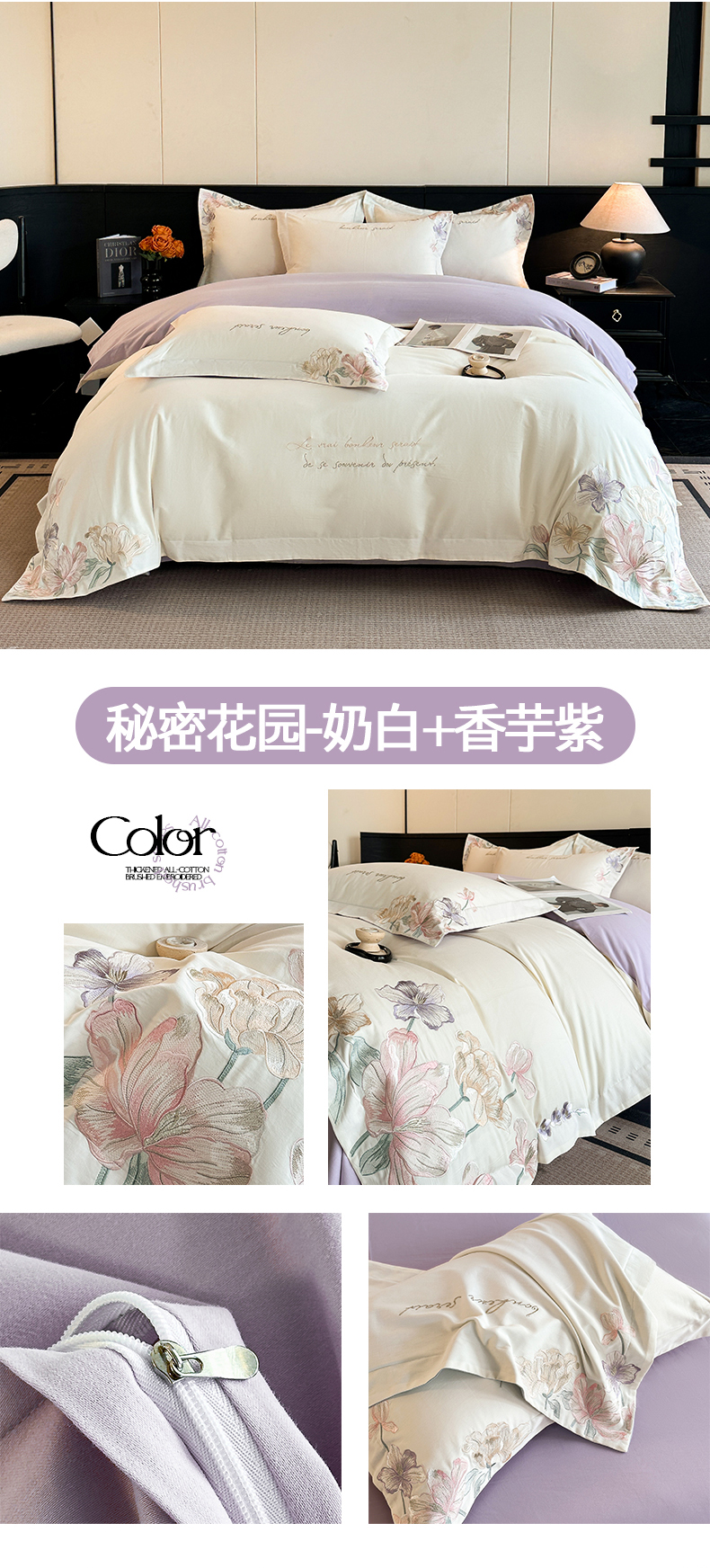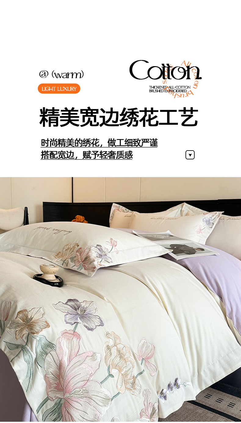 当前位置: 91家纺网 > 商品网购 > 床品套件 > 四件套 > 磨毛活性四件套 > 置顶家纺 2025秋冬新款加厚全棉磨毛四件套-秘密花园 秘密花园-奶白+香芋紫