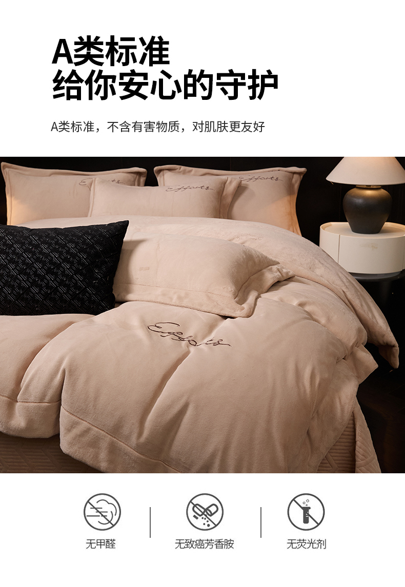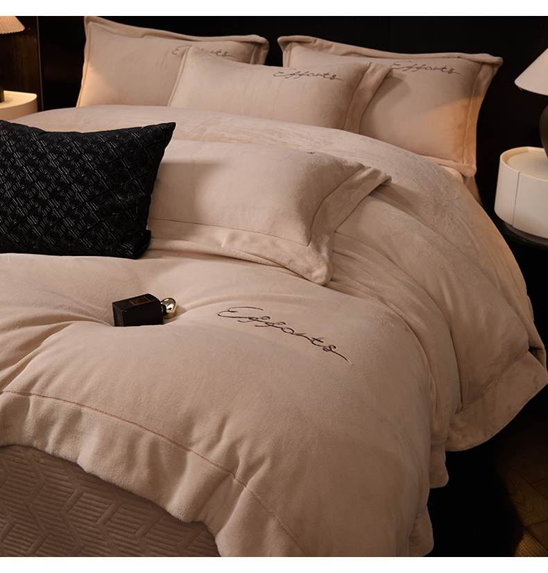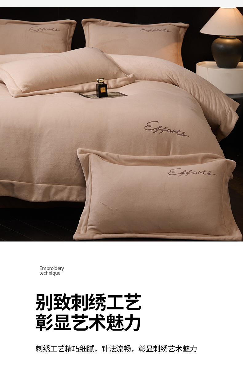 当前位置: 91家纺网 > 商品网购 > 床品套件 > 四件套 > 牛奶绒四件套 > 新方向 2025新款全消光A类刺绣牛奶绒四件套-赫本 赫本-香槟
