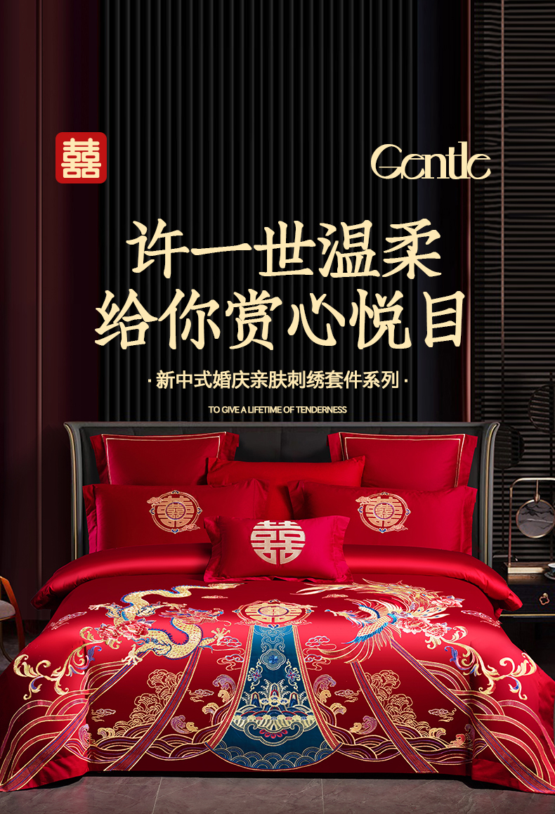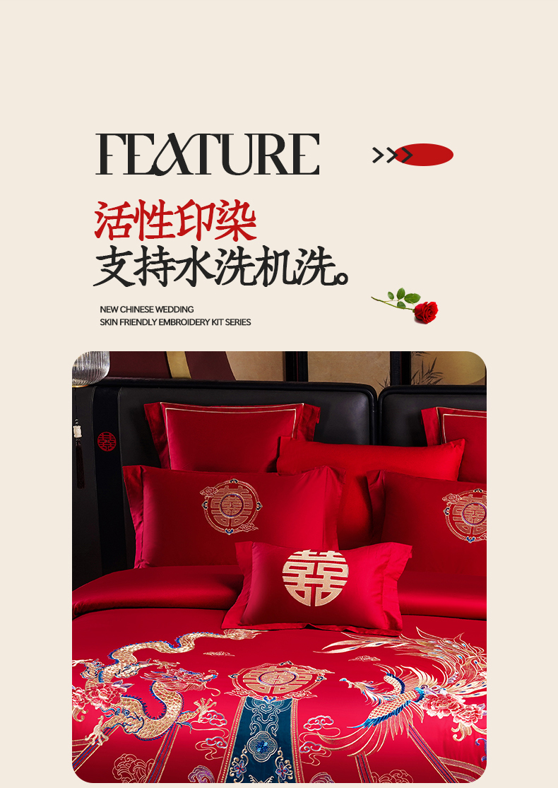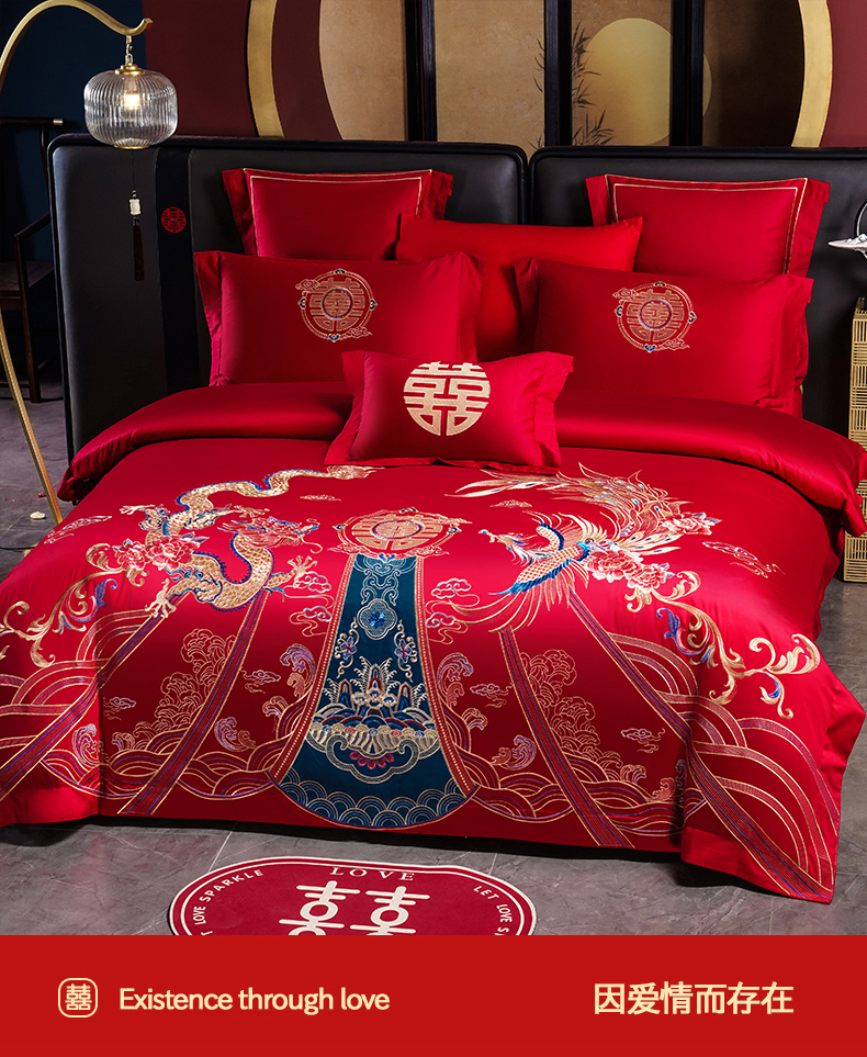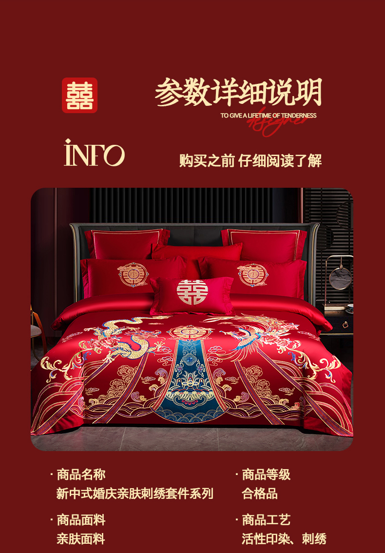 当前位置: 91家纺网 > 商品网购 > 床品套件 > 四件套 > 婚庆四件套 > 置顶家纺 2025新款新中式婚庆亲肤刺绣四件套 盛世龙凤-大红