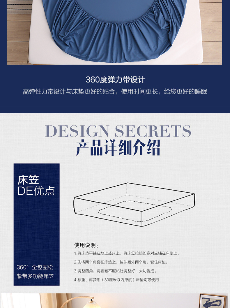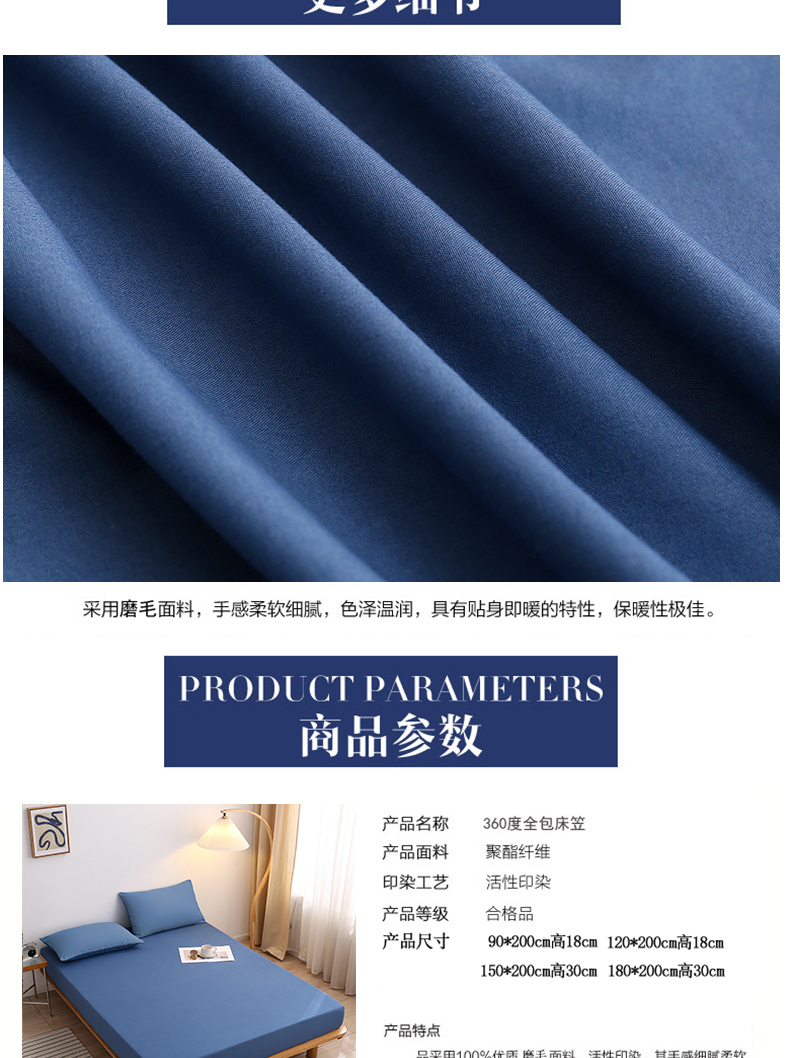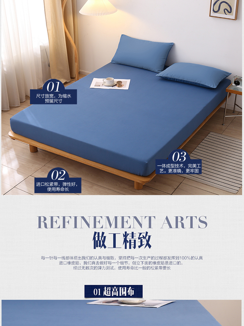 商品名称:啊雅家居 2025新款简约单人床笠双人床笠水洗磨毛床笠 蓝色