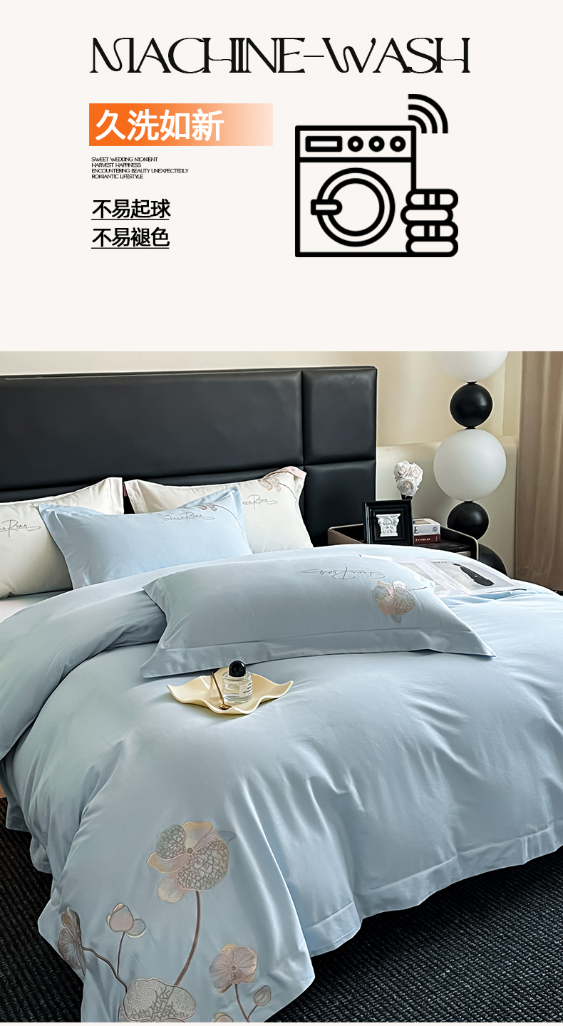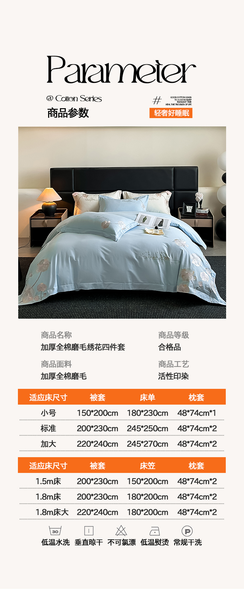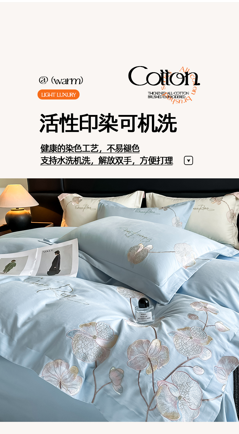 当前位置: 91家纺网 > 商品网购 > 床品套件 > 四件套 > 磨毛活性四件套 > 置顶家纺 2025新款全棉加厚磨毛刺绣秋冬系列四件套-赫本 赫本-浅天蓝