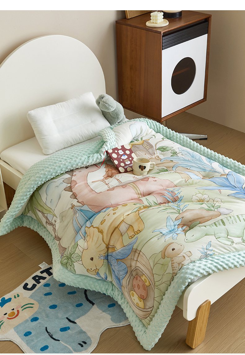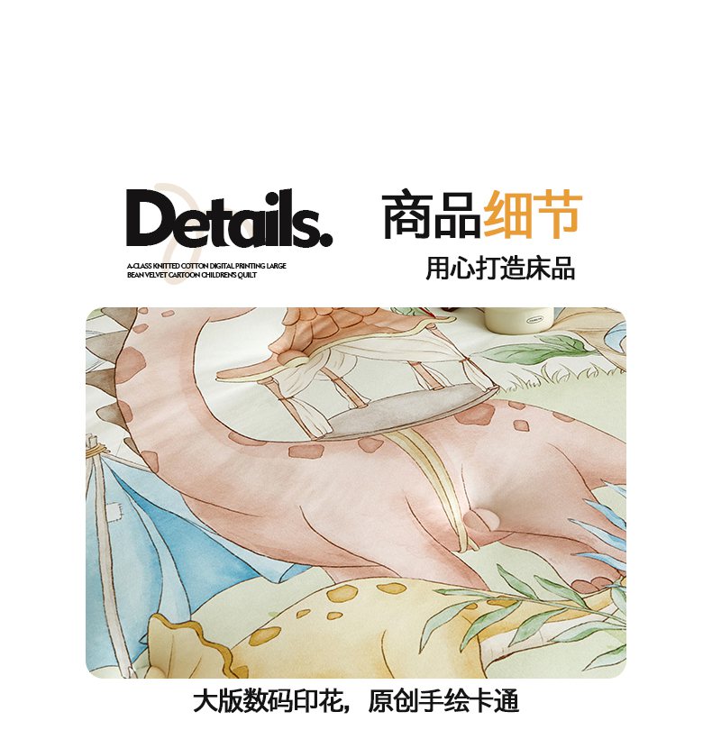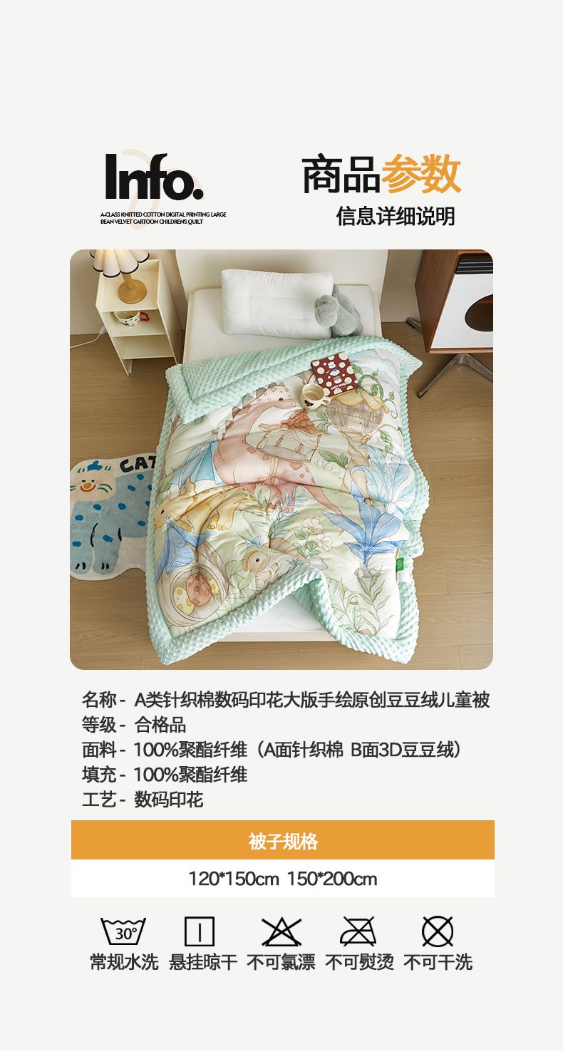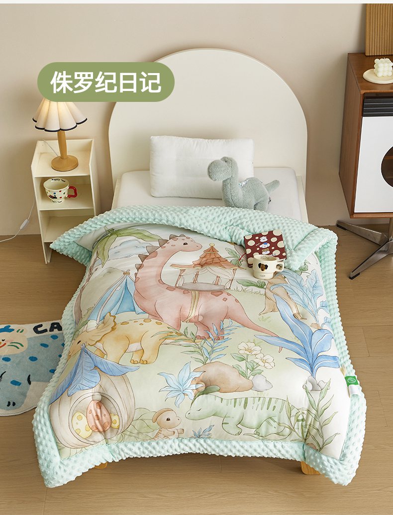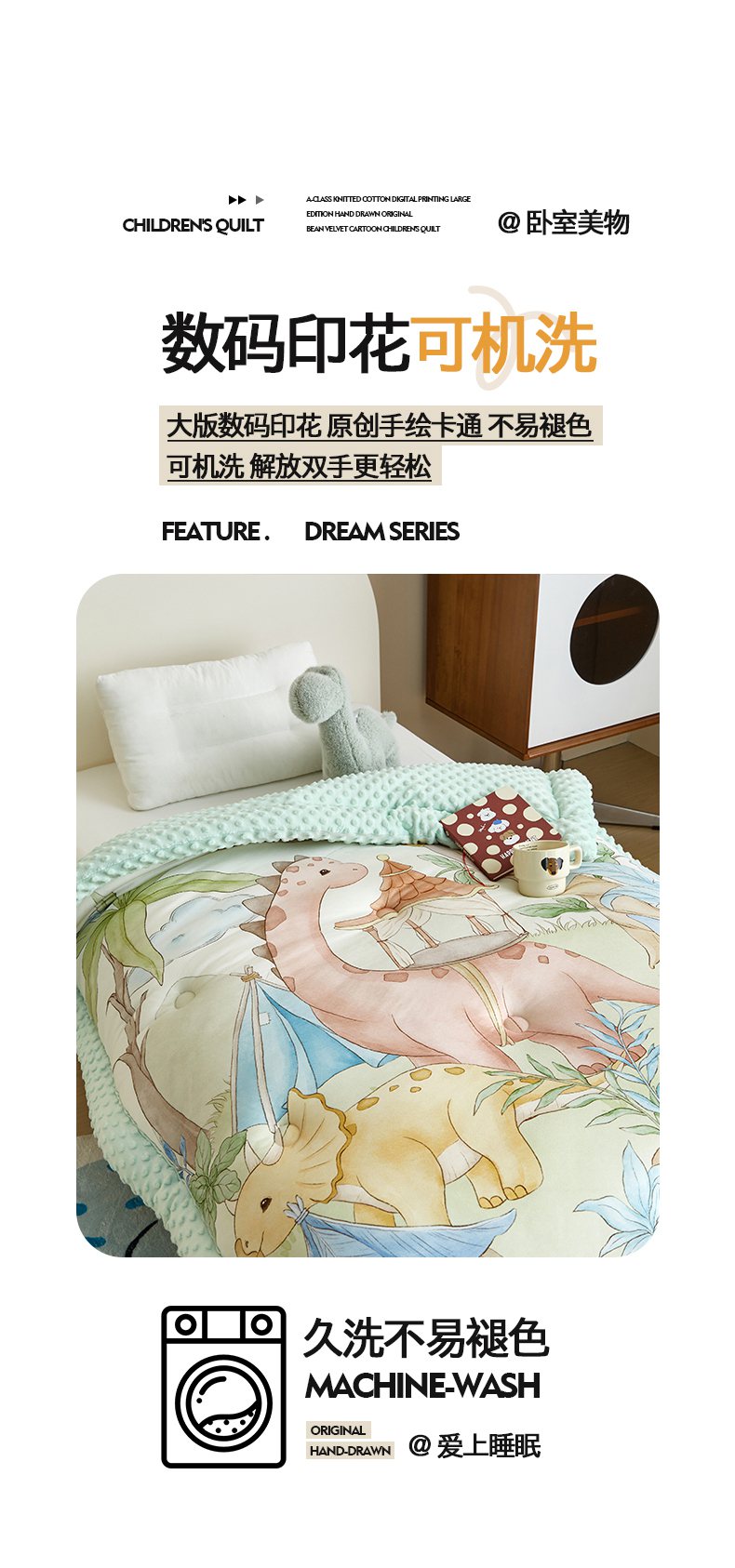 商品名称:荷马之梦 2025新款针织棉数码印花大版手绘原创豆豆绒被芯儿童被子春秋被冬被-梦境系列 梦境-侏罗纪日记