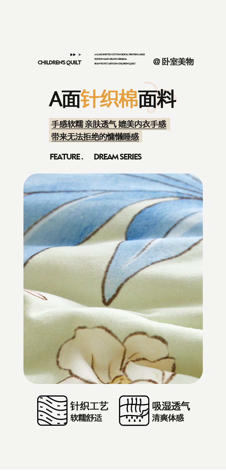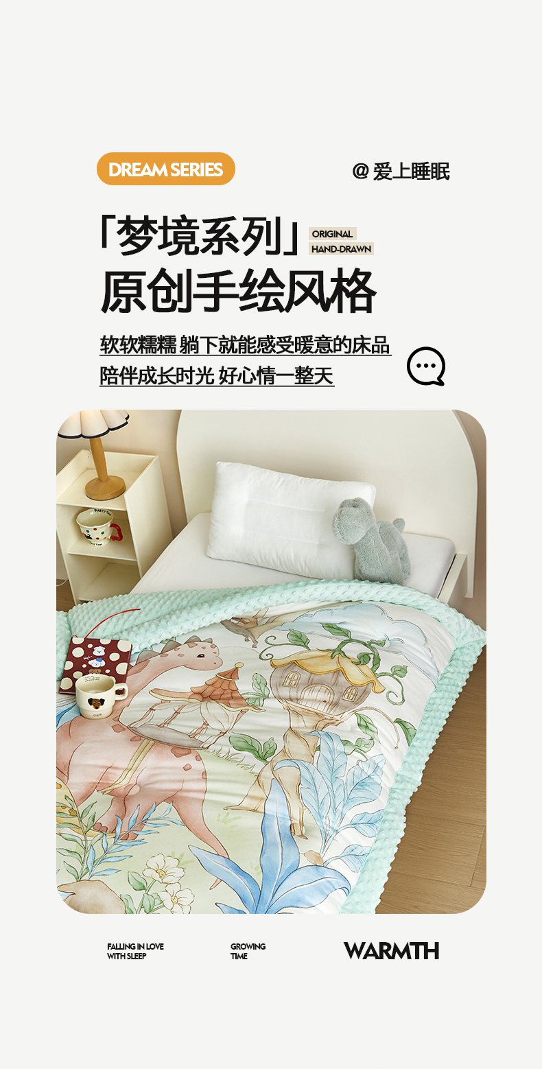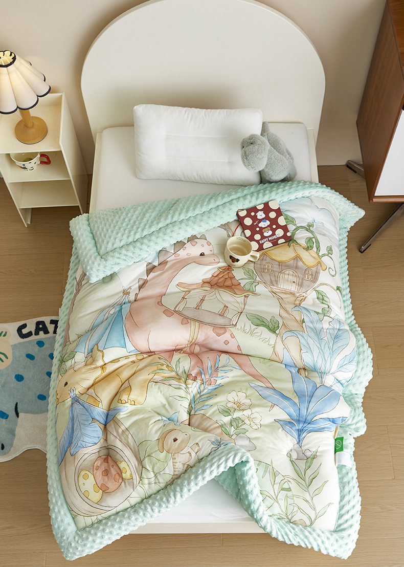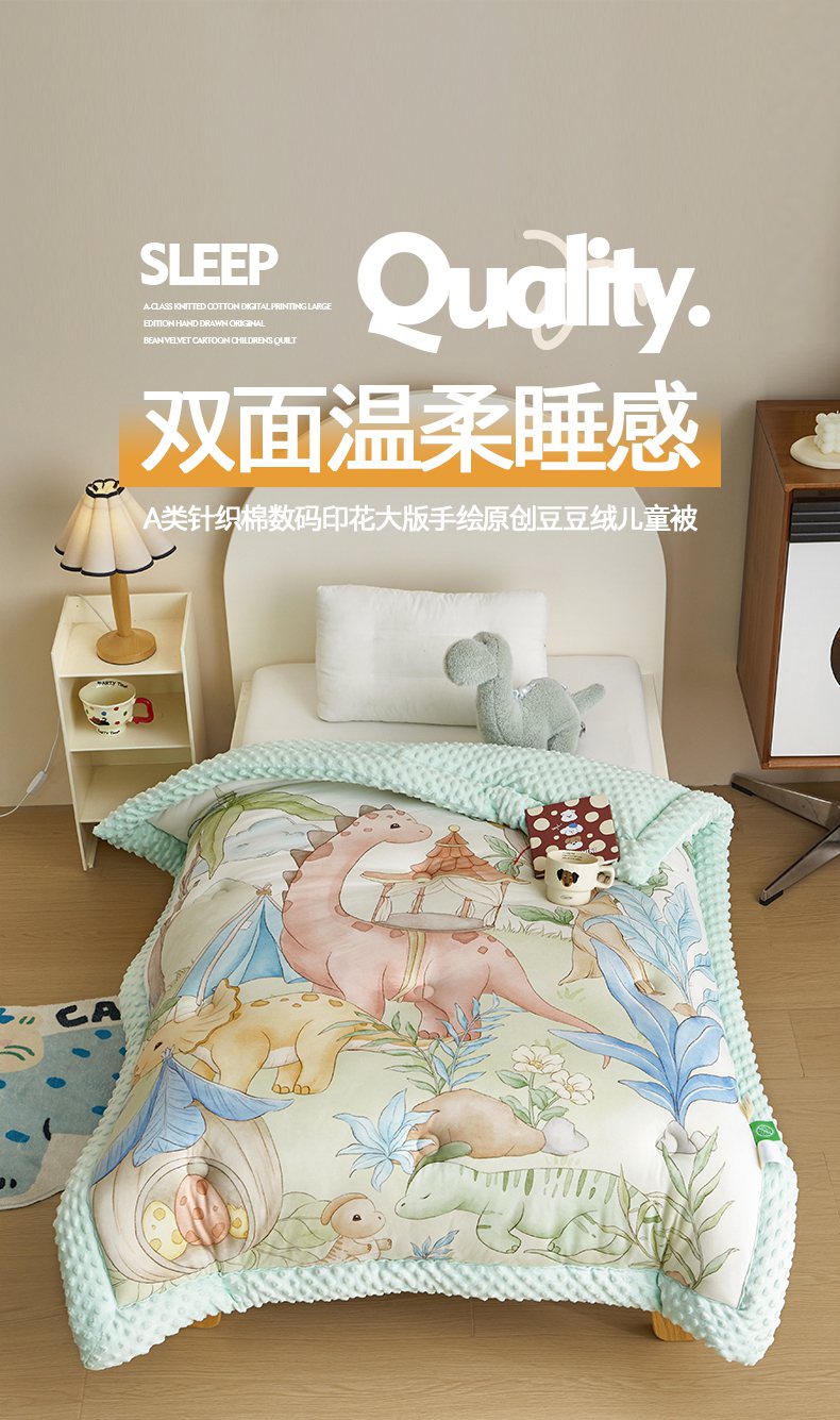 商品名称:荷马之梦 2025新款针织棉数码印花大版手绘原创豆豆绒被芯儿童被子春秋被冬被-梦境系列 梦境-侏罗纪日记