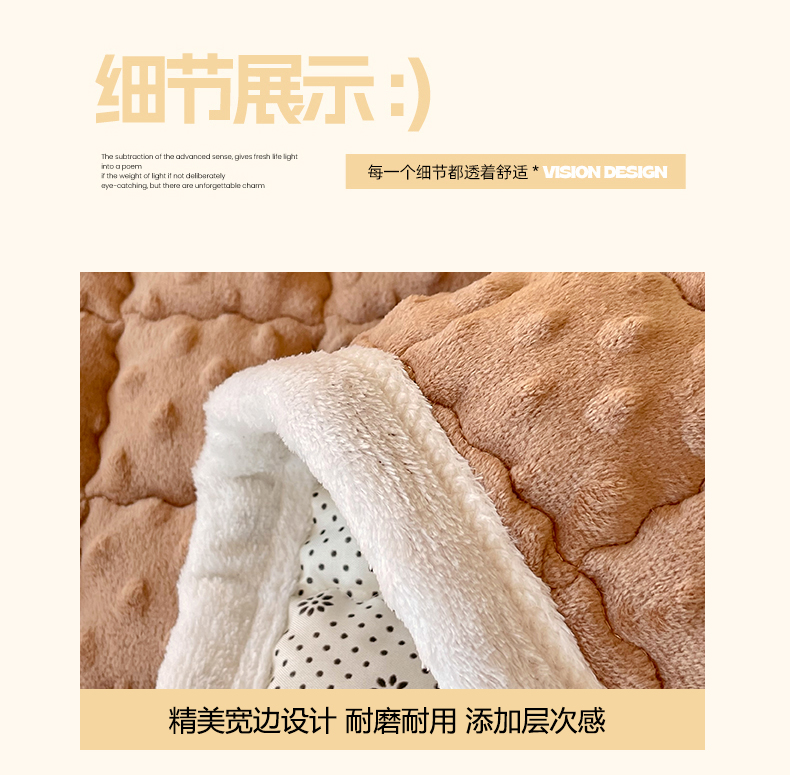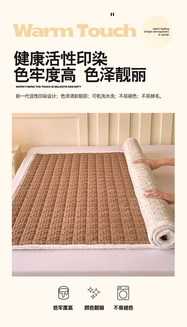 当前位置: 91家纺网 > 商品网购 > 床垫/床褥 > 普通床垫 > 金鑫汇家纺 2025秋冬纯色豆豆绒床褥垫系列-加大床 加大床豆豆绒床褥垫咖色