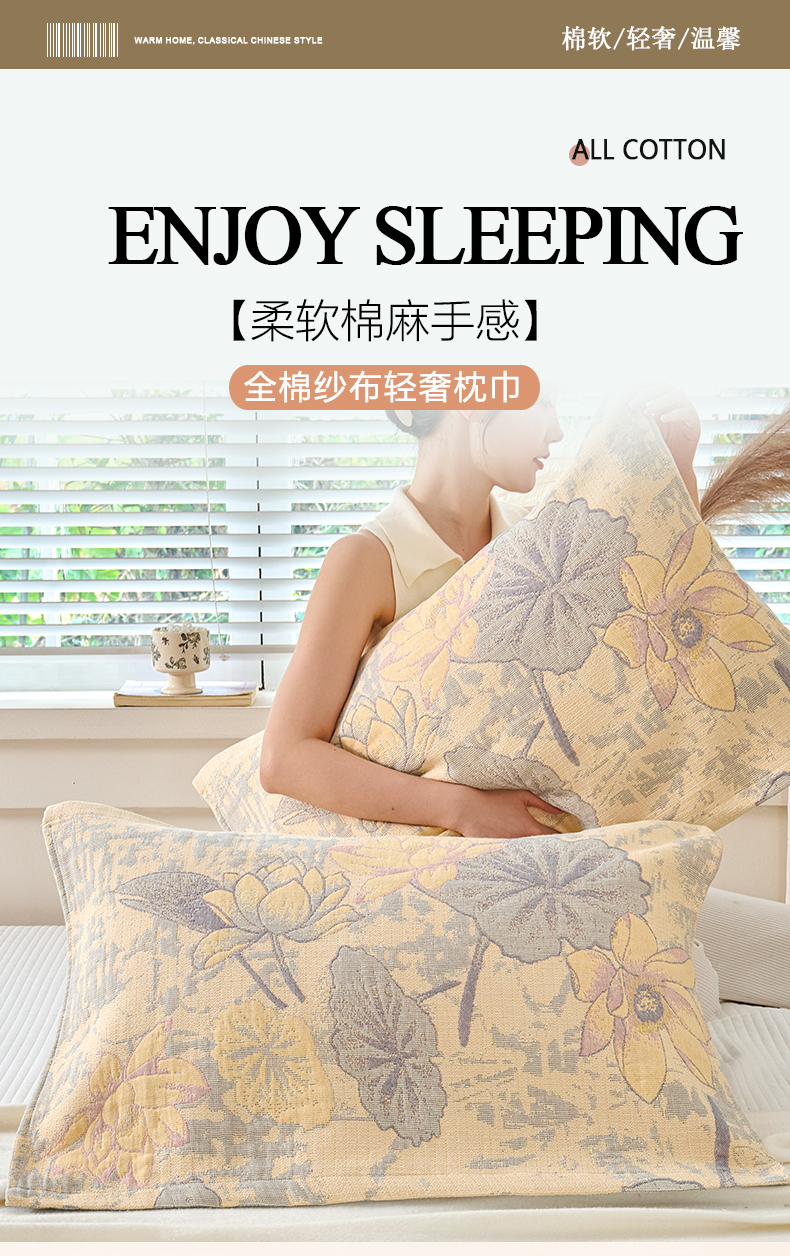 棠薇家纺 2025新款纯棉枕巾一对装男生100全棉枕头巾防头油轻奢高级感棉麻手感 荷塘月色