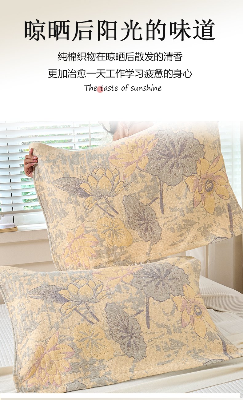 商品名称:棠薇家纺 2025新款纯棉枕巾一对装男生100全棉枕头巾防头油轻奢高级感棉麻手感 荷塘月色