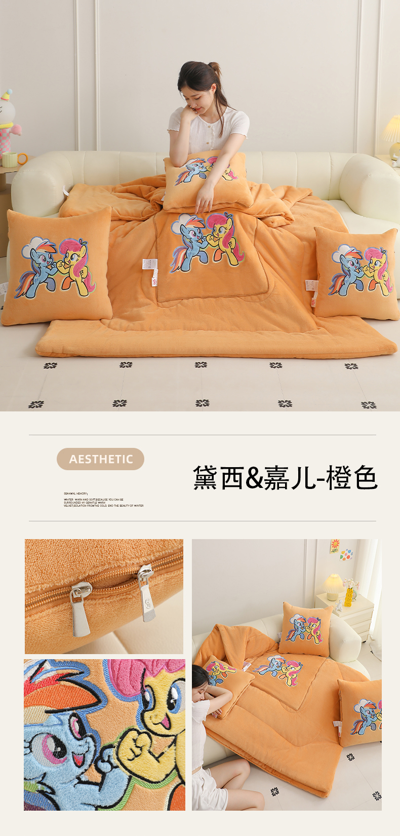 (总)照世家纺 2025新款小马宝莉抗菌棉抱枕被(低于零售价的链接 一经发现直接投诉下架 感谢大家的支持 控价是优惠券后不能低于40的89,45的109,50的139),黛西&嘉儿-橙色,黛西&嘉儿-紫色,月亮公主-深蓝,月亮公主-紫色,云宝-橙色,云宝-黄色,紫悦-橙色,紫悦-蓝色