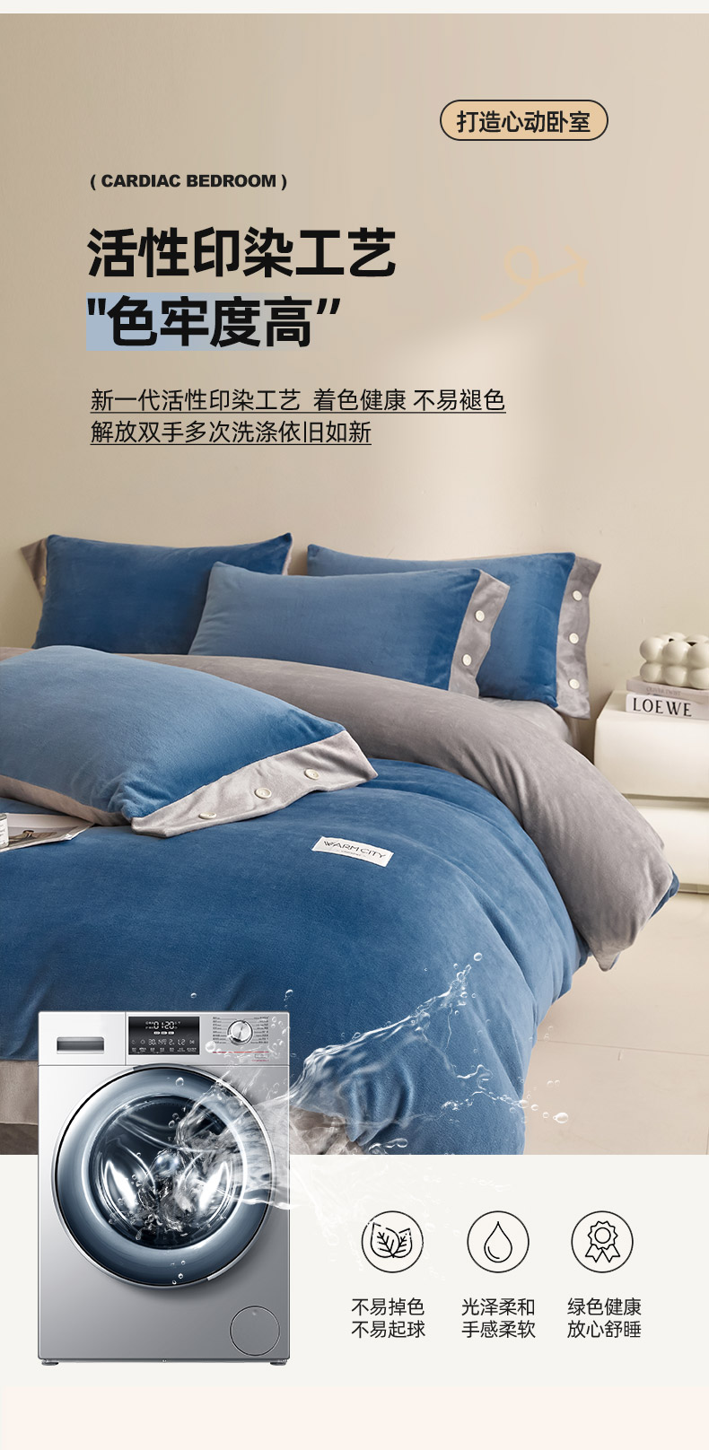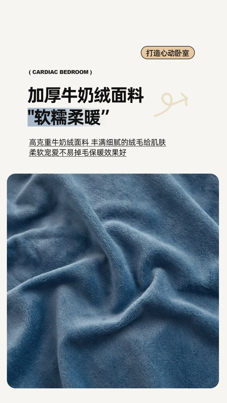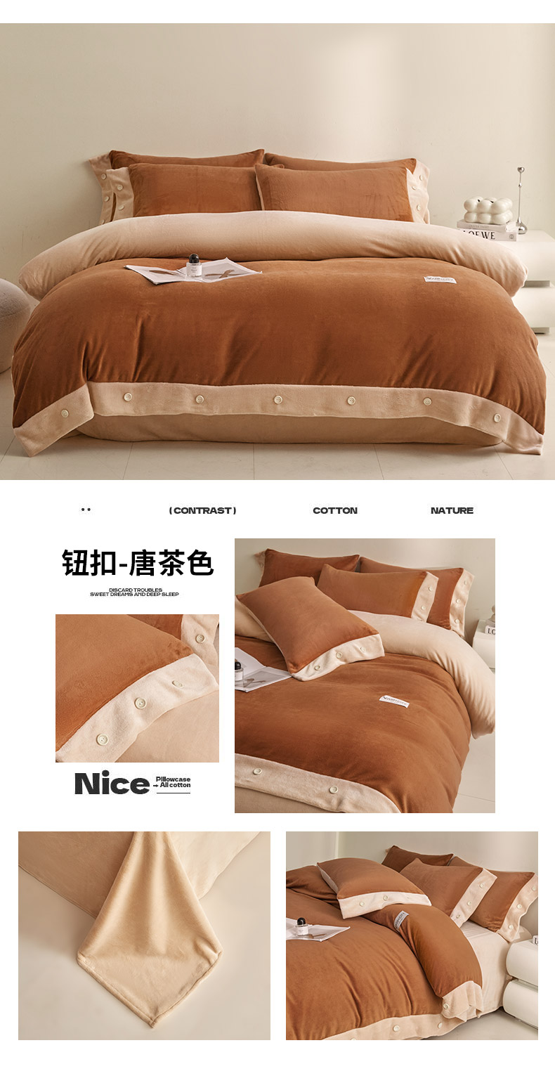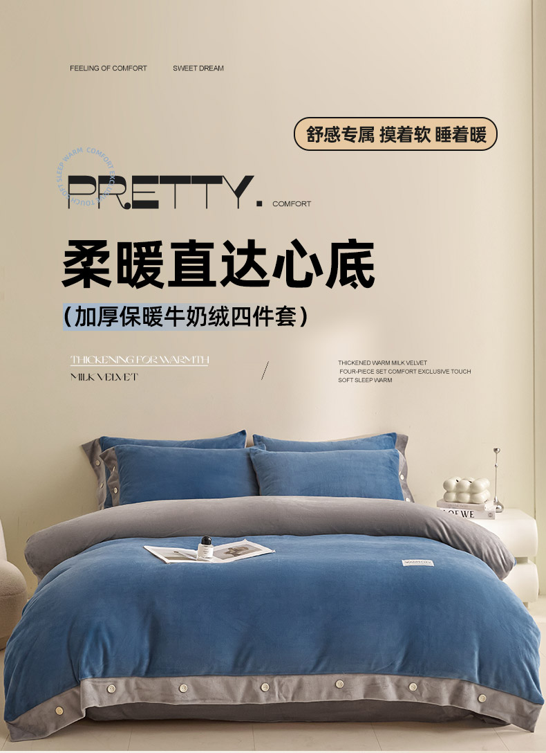 吾诺家居 吾诺 2025 双拼色牛奶绒四件套纽扣四件套钮扣牛奶绒四件套 - 纽扣系列 钮扣-景泰蓝