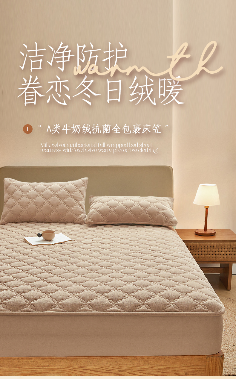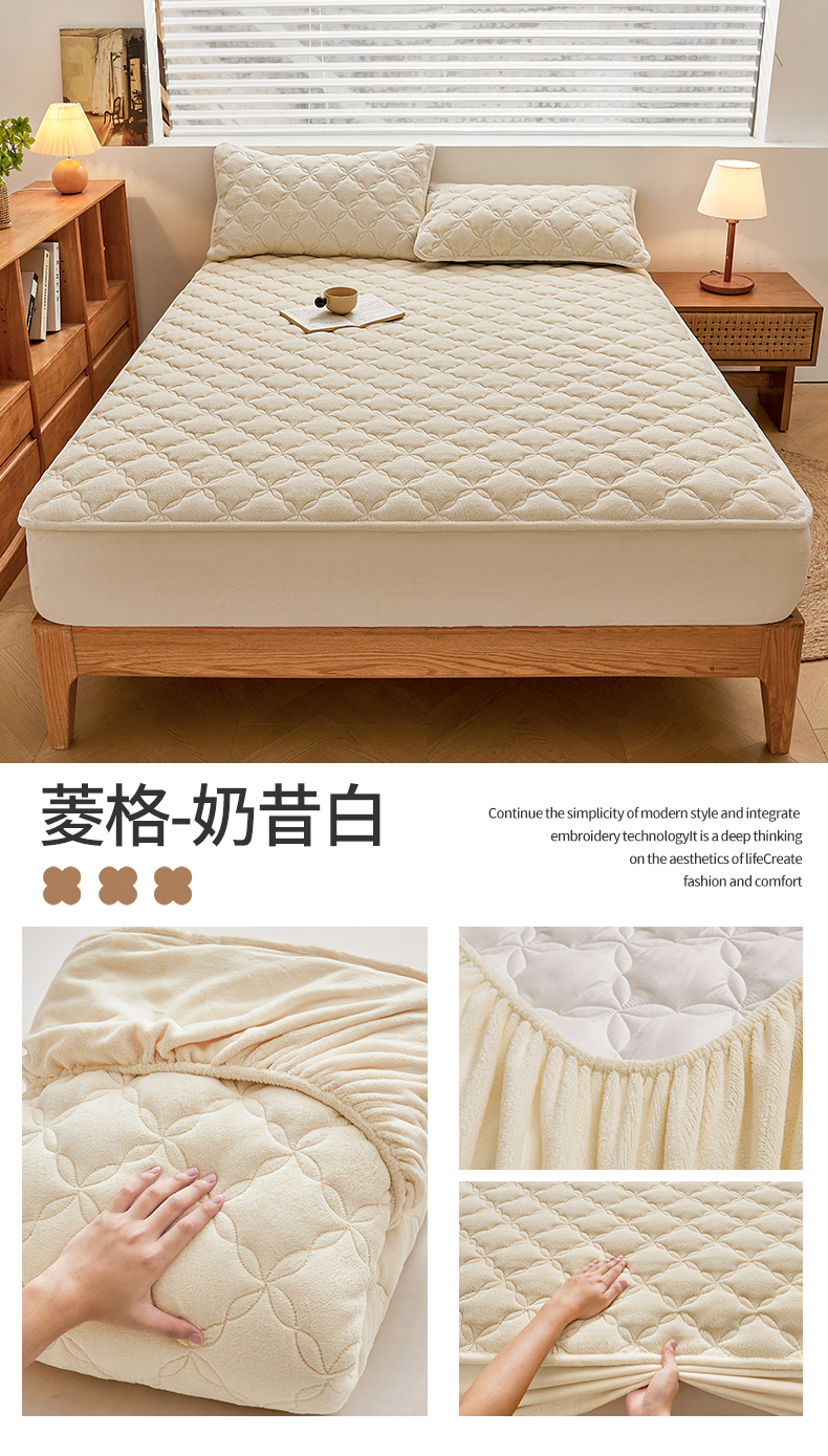 商品名称:布卢姆床垫 2025新款A类抗菌牛奶绒床笠 菱格-卡其