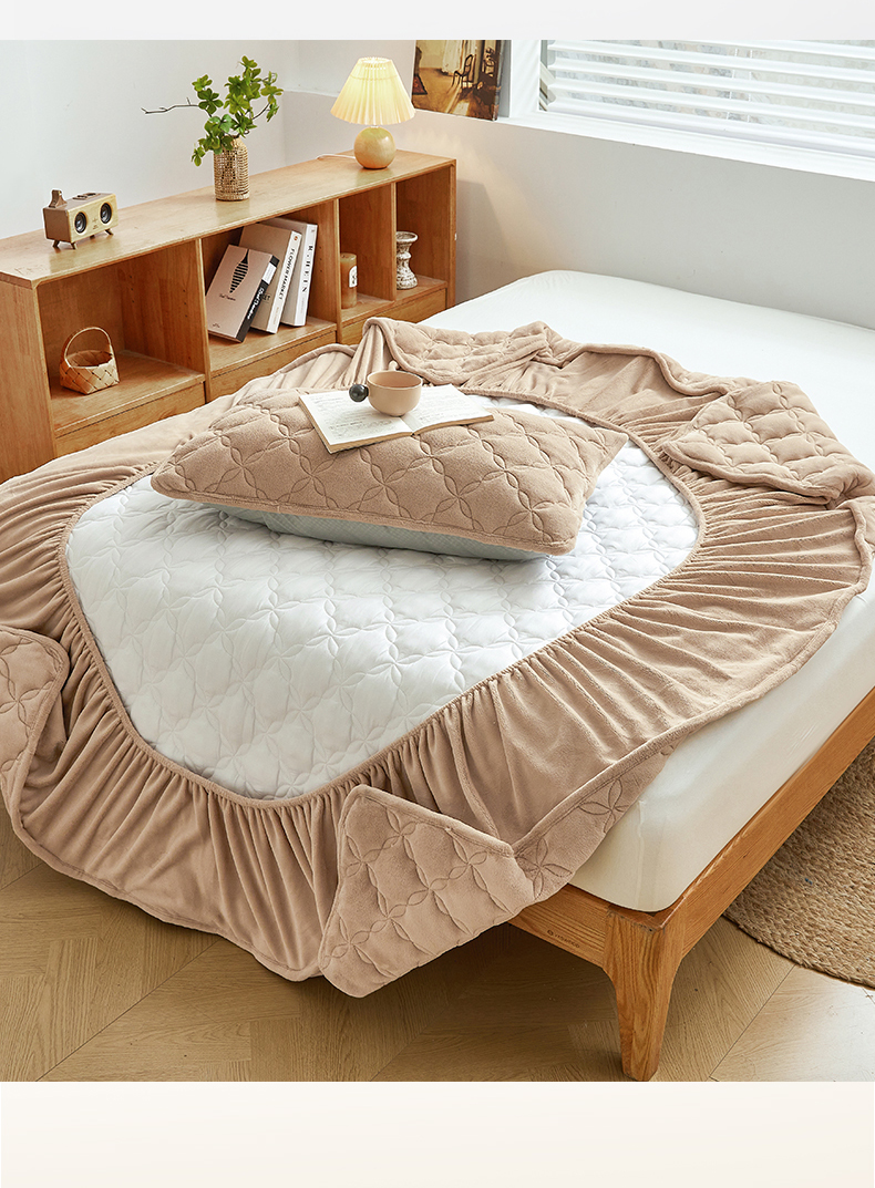 布卢姆床垫 2025新款A类抗菌牛奶绒床笠 菱格-卡其