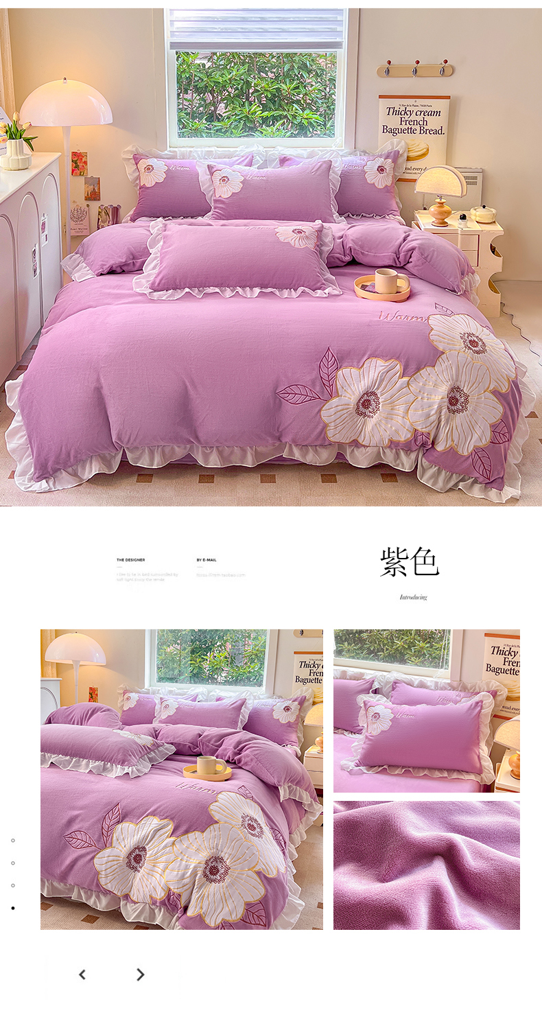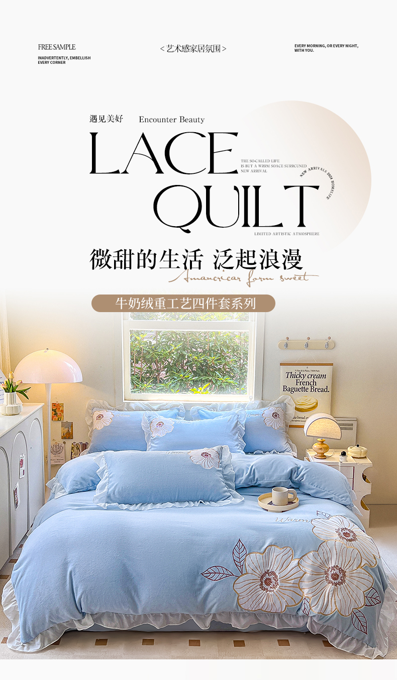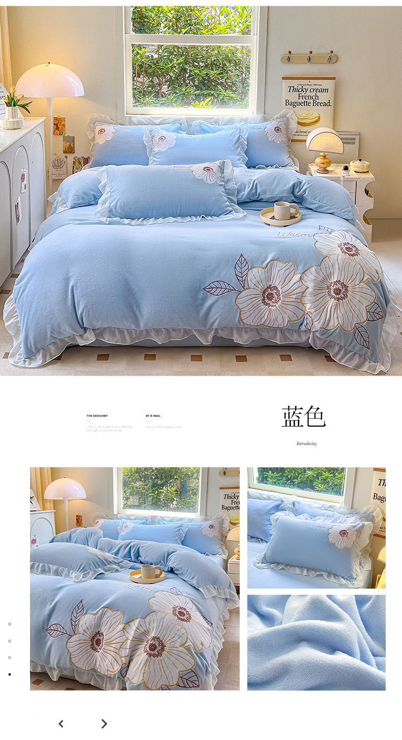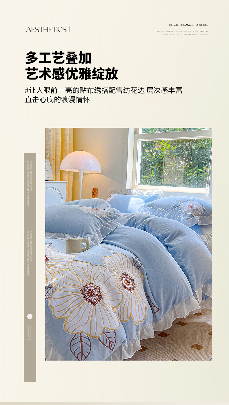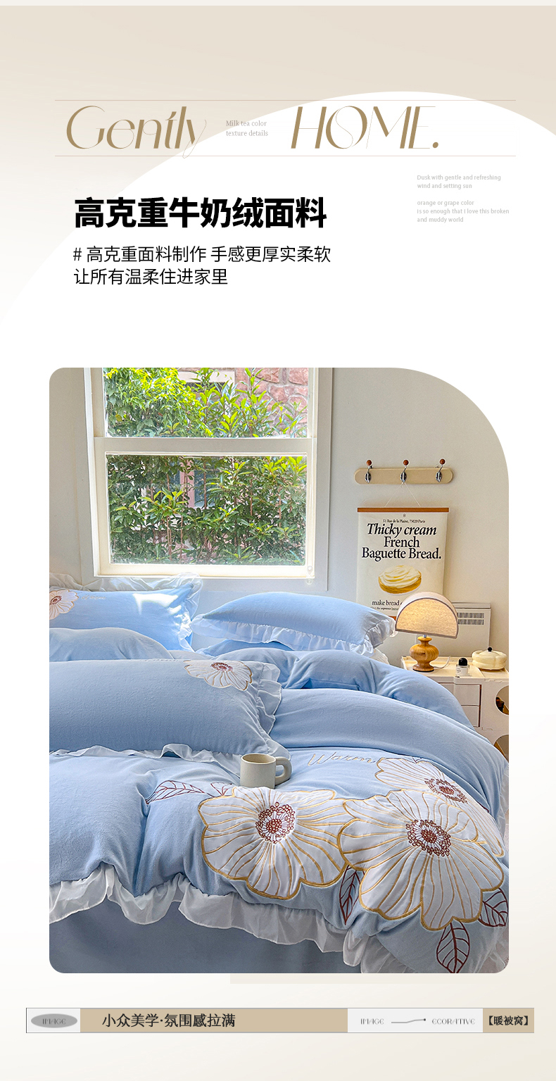 当前位置: 91家纺网 > 商品网购 > 床品套件 > 四件套 > 牛奶绒四件套 > 木子家纺 2025新款半亩花田牛奶绒四件套 杜若蓝