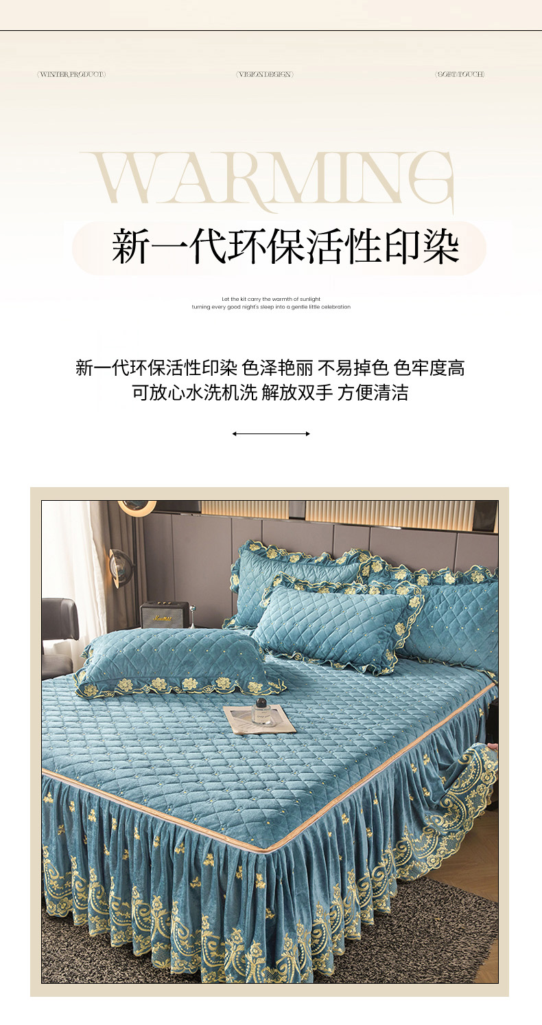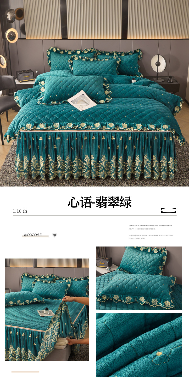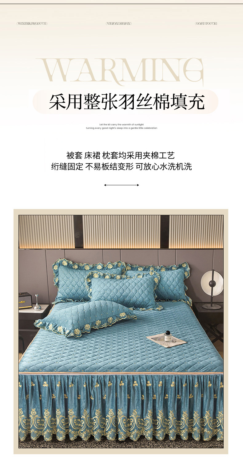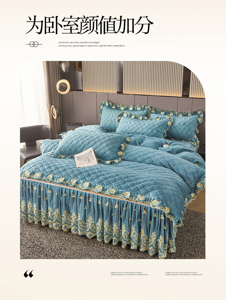 当前位置: 91家纺网 > 商品网购 > 床品套件 > 四件套 > 其它四件套 > 罗艺轩 2025新款婴儿绒加厚保暖床裙式四件套-心语 心语-湖蓝