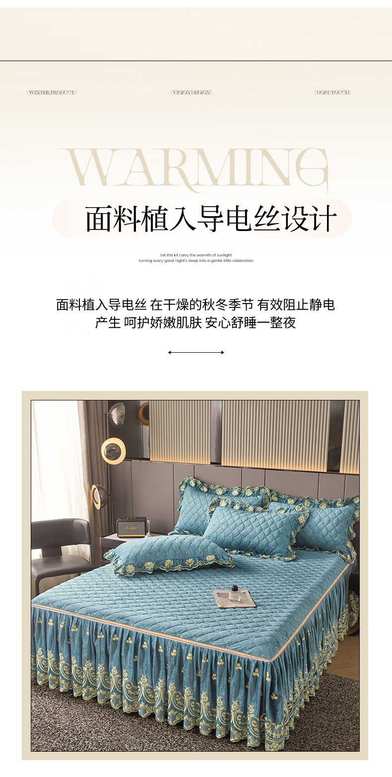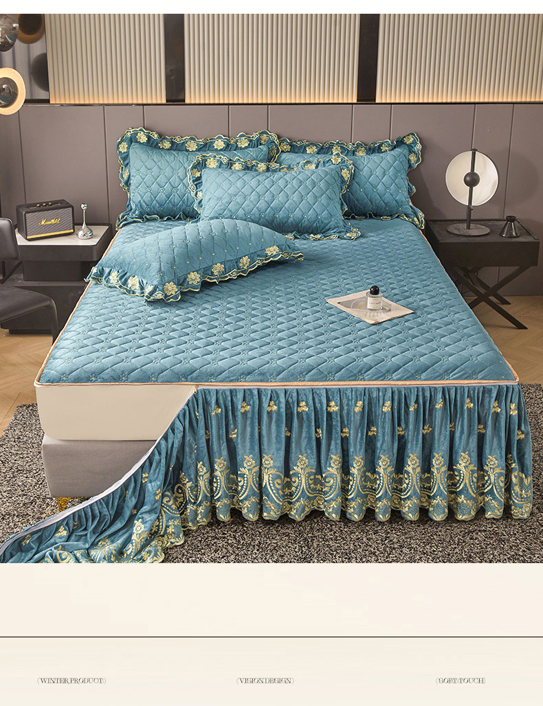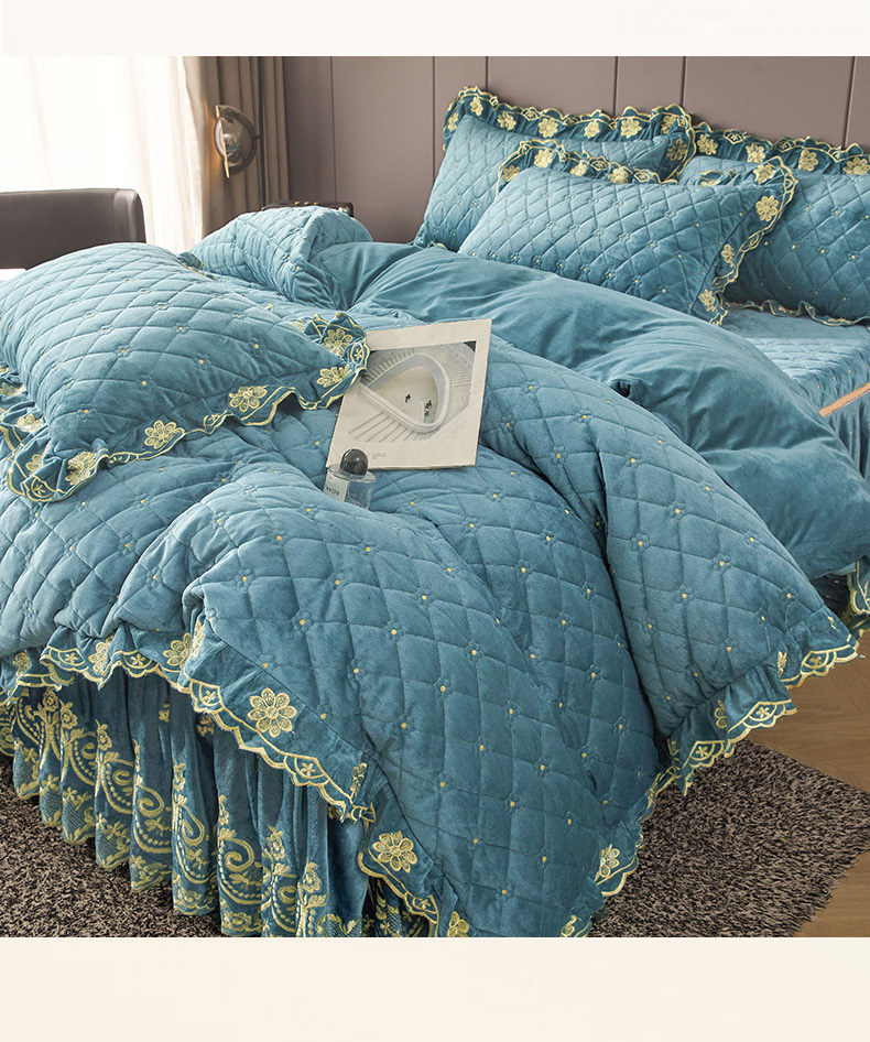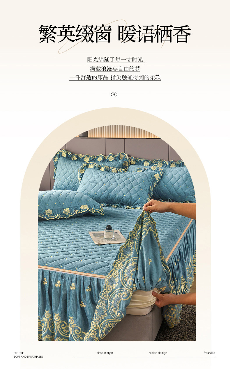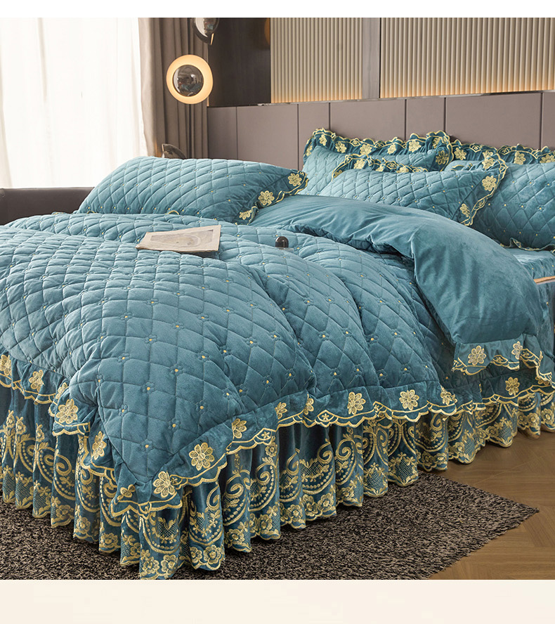 当前位置: 91家纺网 > 商品网购 > 床品套件 > 四件套 > 其它四件套 > 罗艺轩 2025新款婴儿绒加厚保暖床裙式四件套-心语 心语-湖蓝