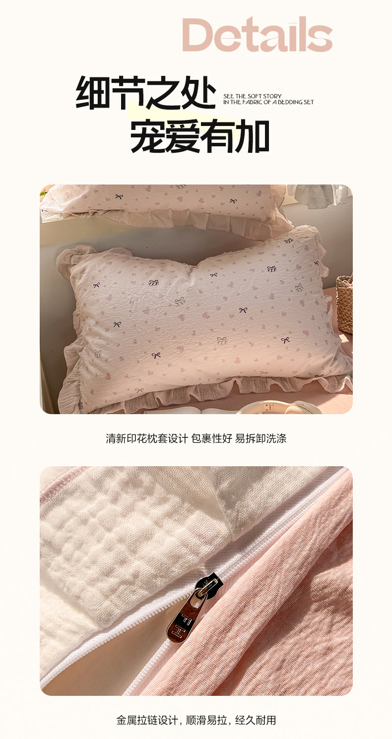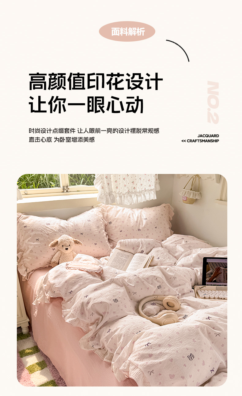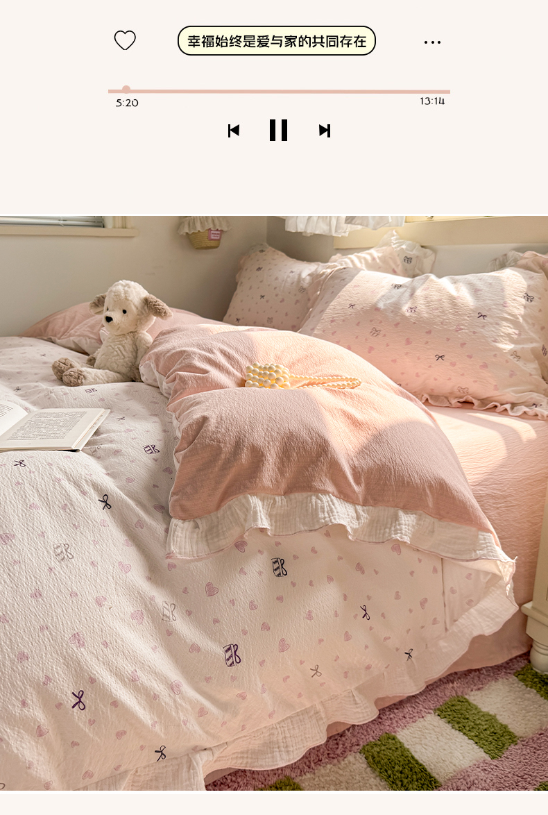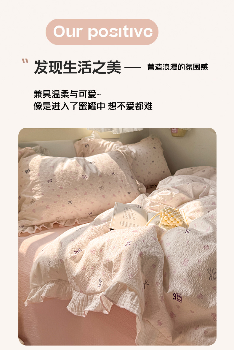 当前位置: 91家纺网 > 商品网购 > 床品套件 > 四件套 > 其它四件套 > 繁花家居 2025新款高弹线云感木棉多层纱花边超软四件套 蝴蝶结爱心